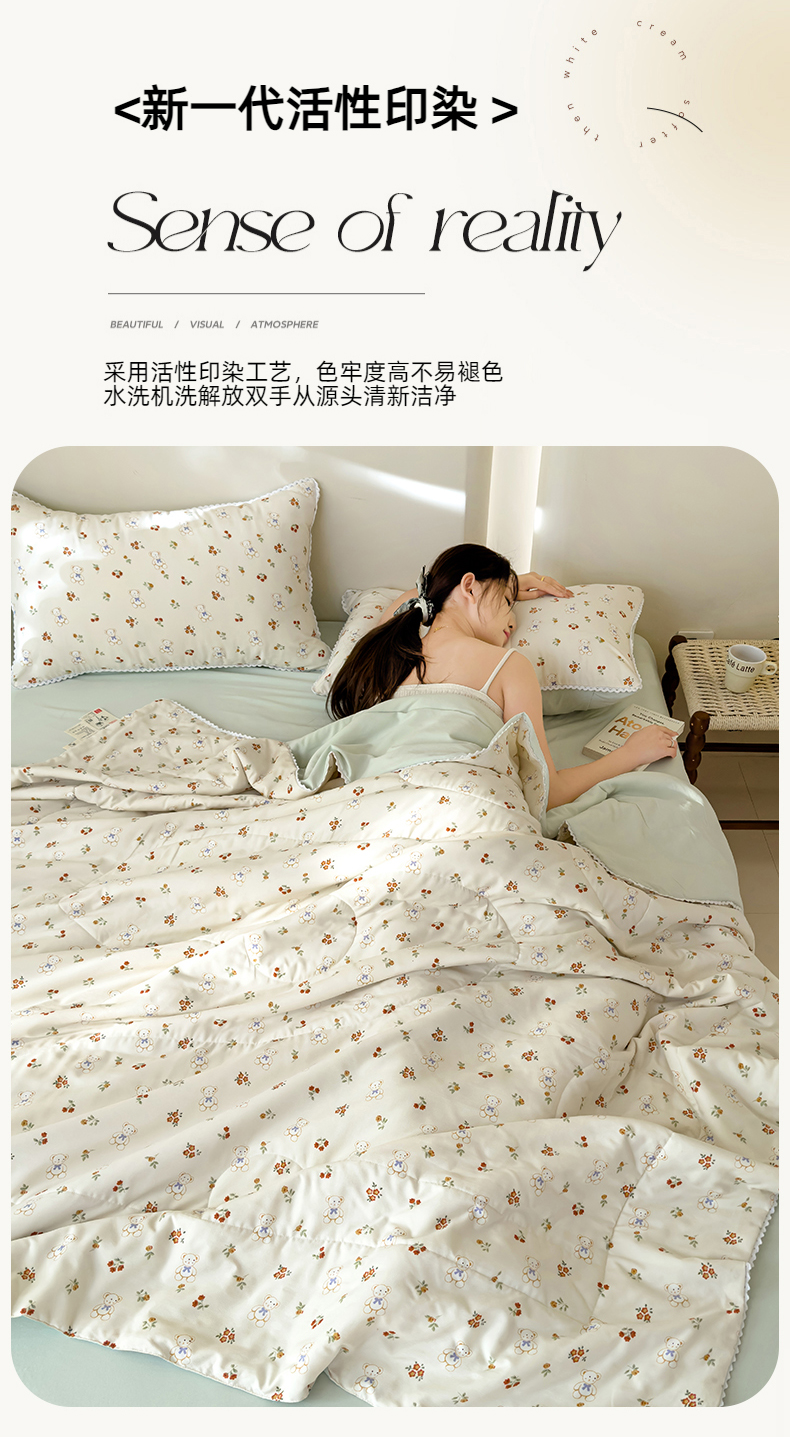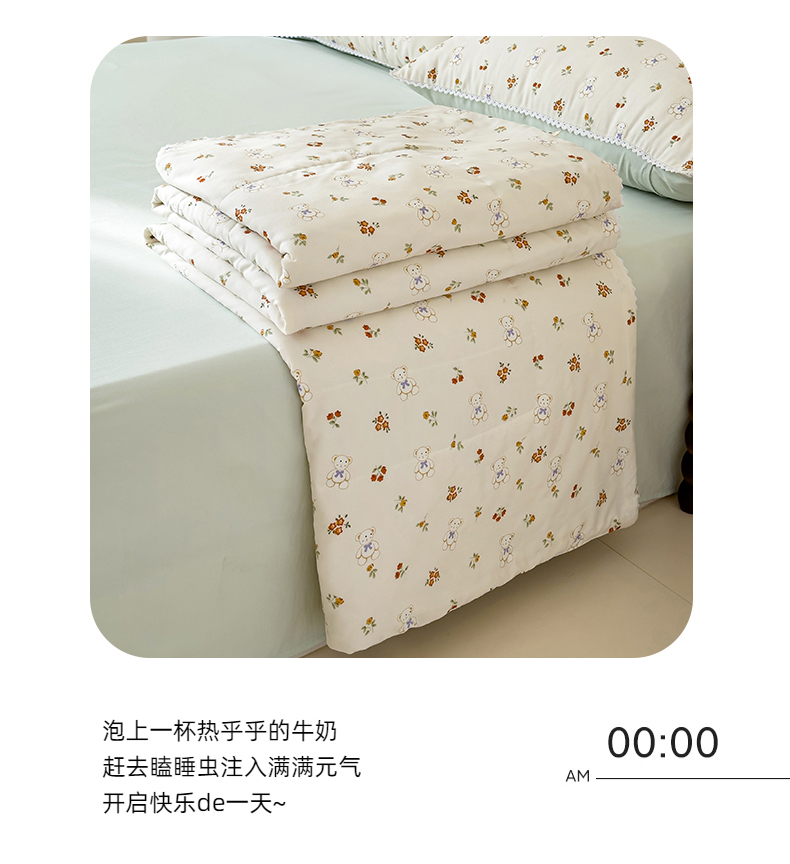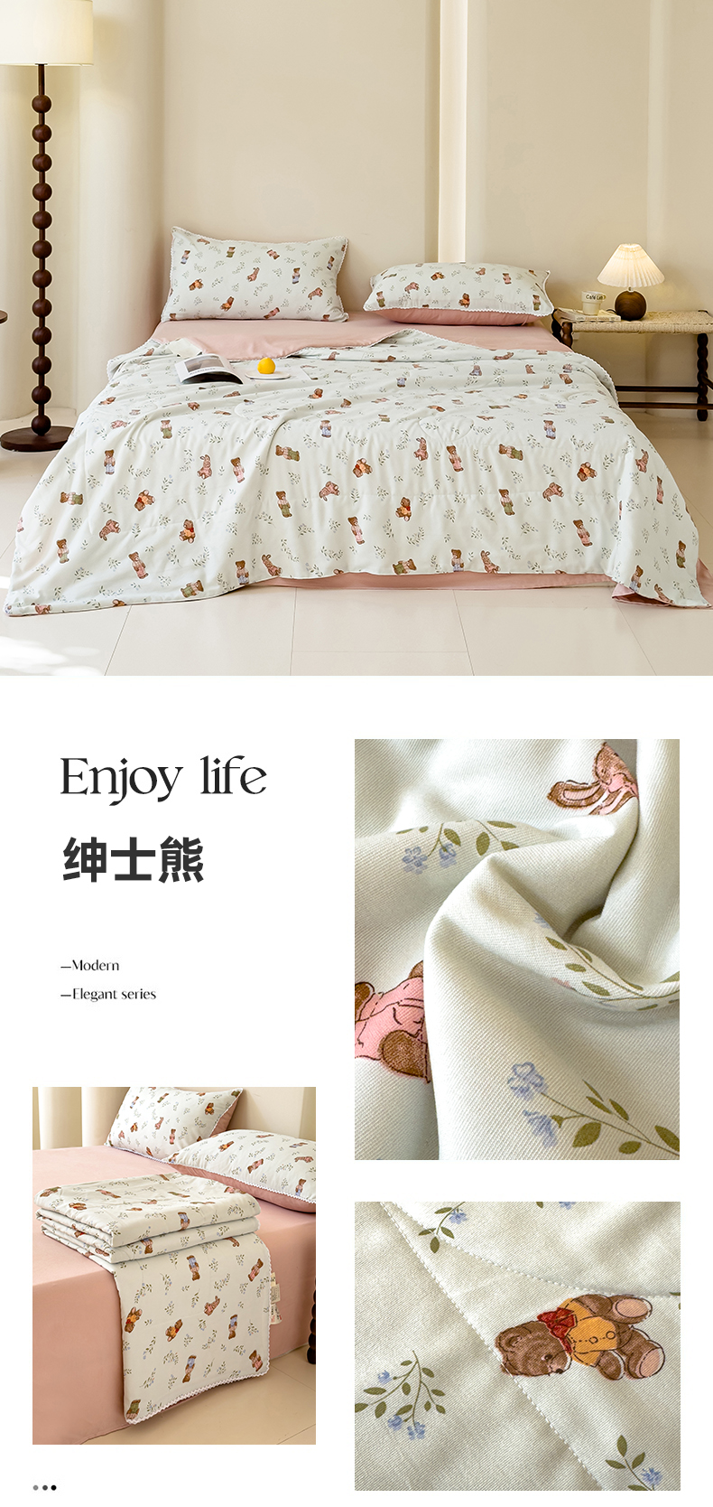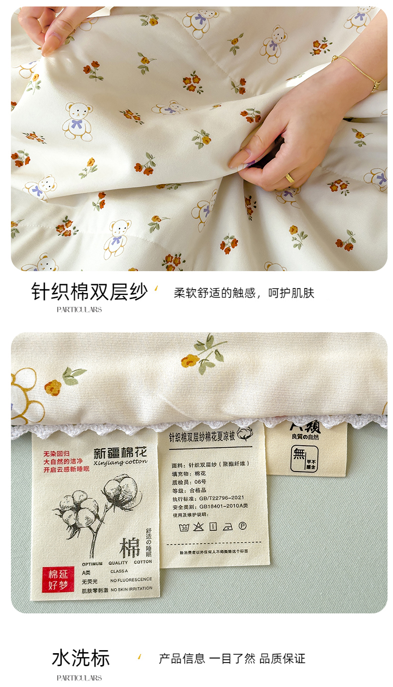 当前位置: 91家纺网 > 商品网购 > 被子 > 夏被 > 2025新款针织棉双层纱小花边棉花夏凉被 可爱熊