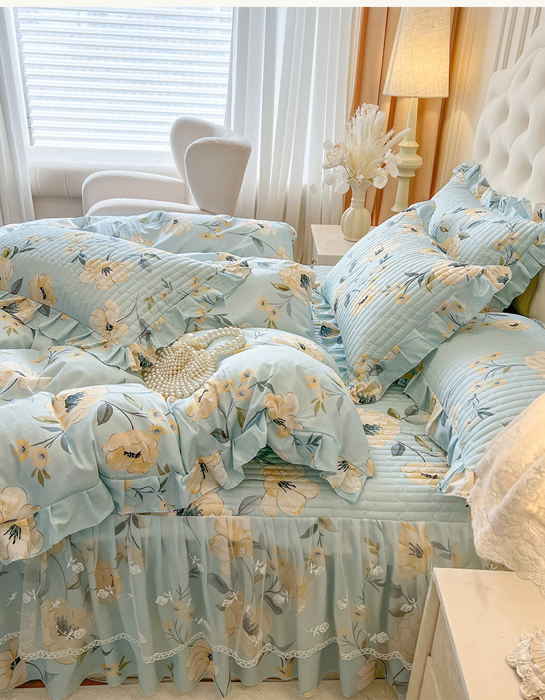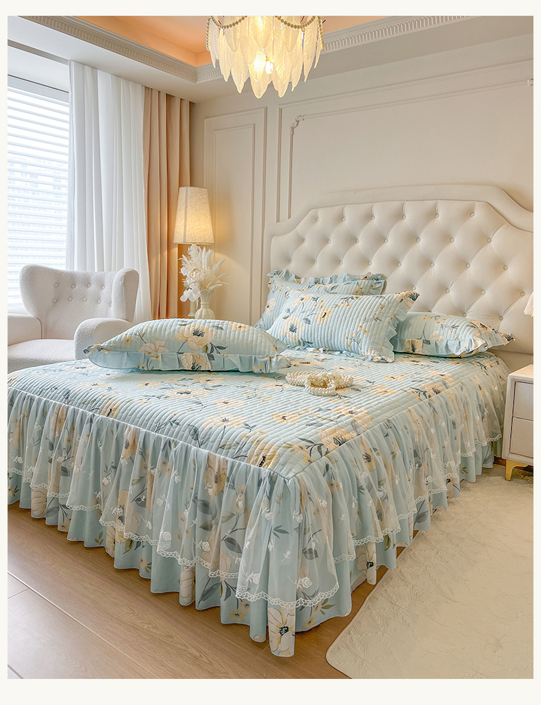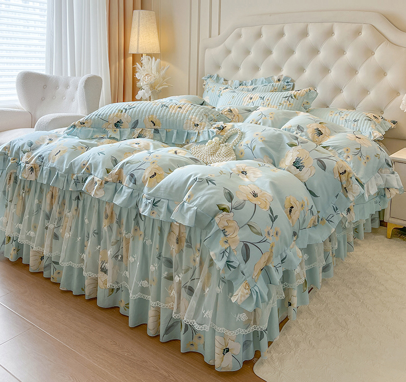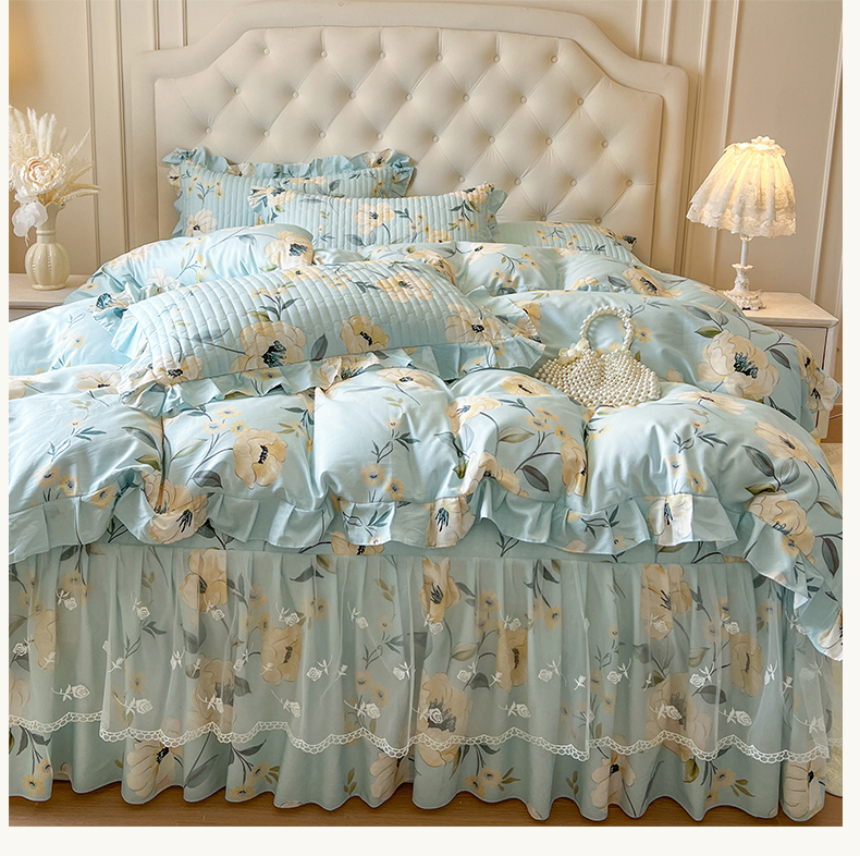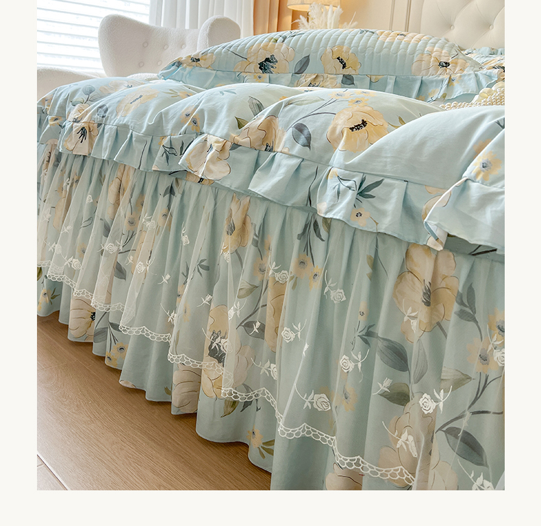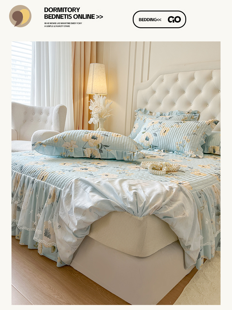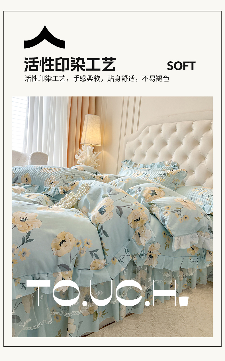 当前位置: 91家纺网 > 商品网购 > 床品套件 > 四件套 > 全棉普通四件套 > 恋尚 2025新款全棉纯棉蕾丝印花床笠裙四件套 浅栀
