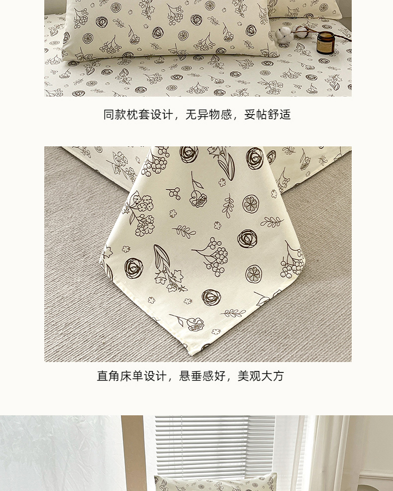 商品名称:(总)九沐良品 2025新款100%全棉纯棉老粗布花卉系列无印系列单品床单三件套(有版权)