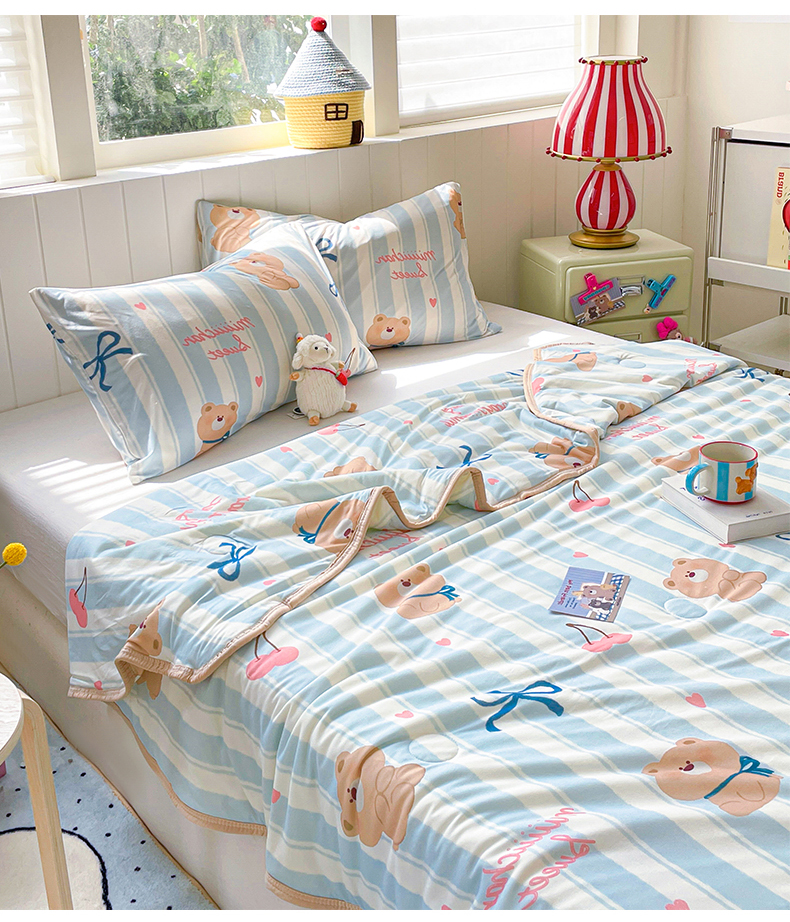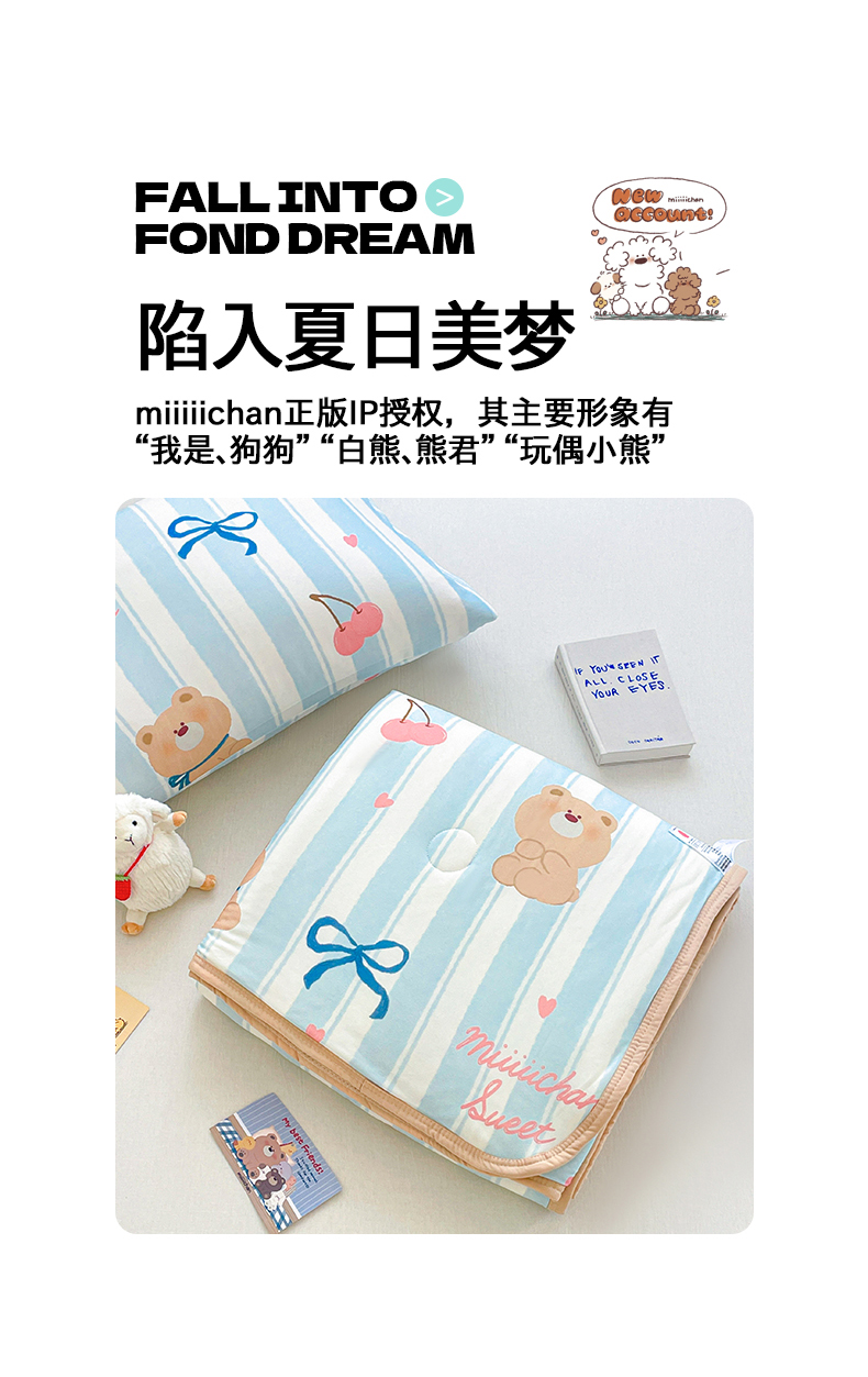 • 91家纺网 家纺一手货源 找家纺 金爱家2025新款A类高品质正版授权miiiiichan可爱卡通狗狗白熊女孩牛奶丝针织棉夏被 针织棉miiiiichan-樱桃熊君