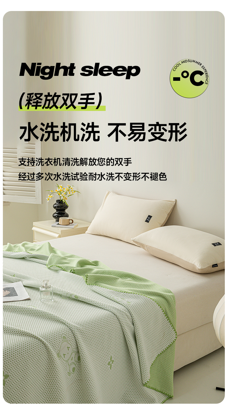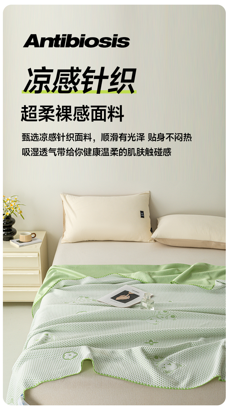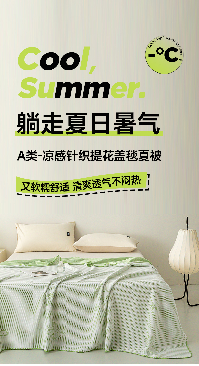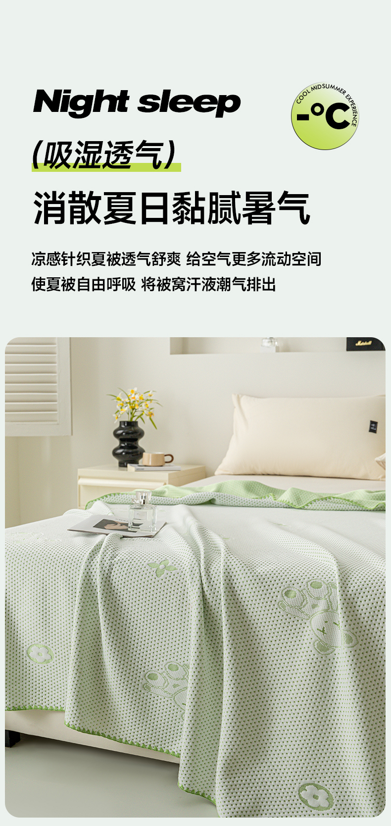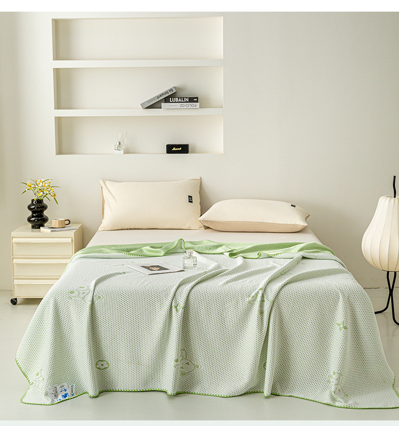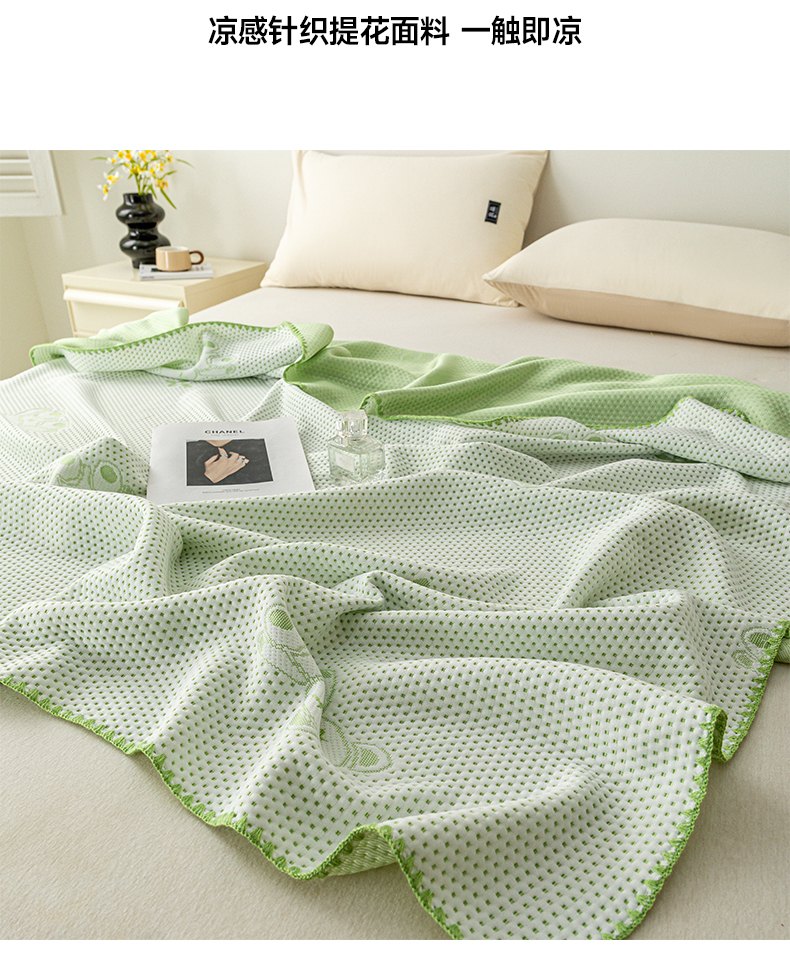 商品名称:梦尚舒 2025新款直播热款凉感针织提花盖毯子夏被贝壳边空调被 暴力熊-绿