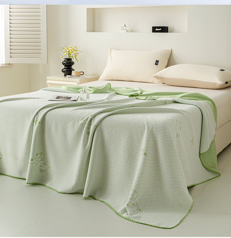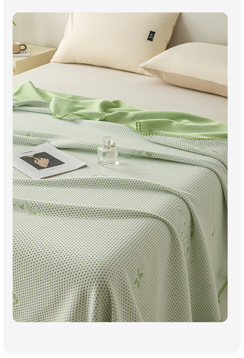 梦尚舒 2025新款直播热款凉感针织提花盖毯子夏被贝壳边空调被 暴力熊-绿