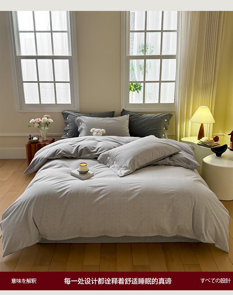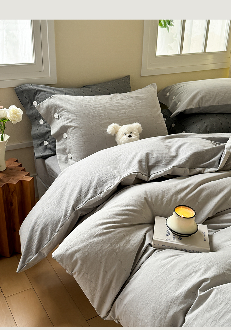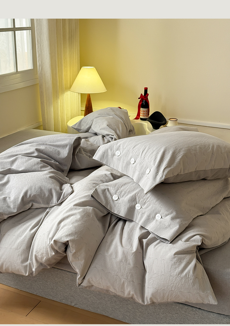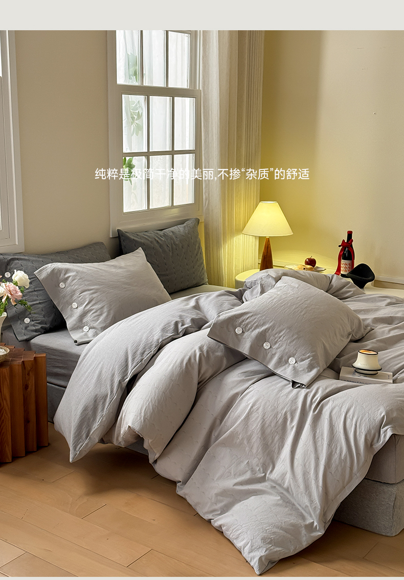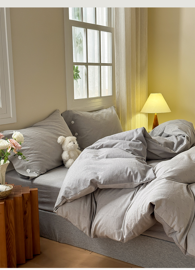 当前位置: 91家纺网 > 商品网购 > 床品套件 > 四件套 > 全棉普通四件套 > 华超针织 2025新款全棉纯棉水洗提花四件套 -漾影 风格二 漾影浅灰