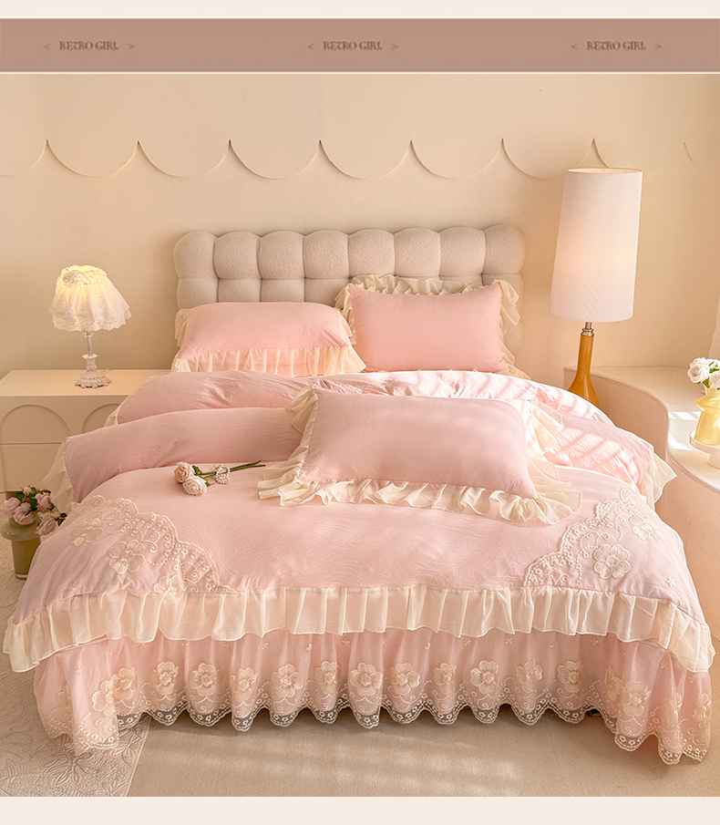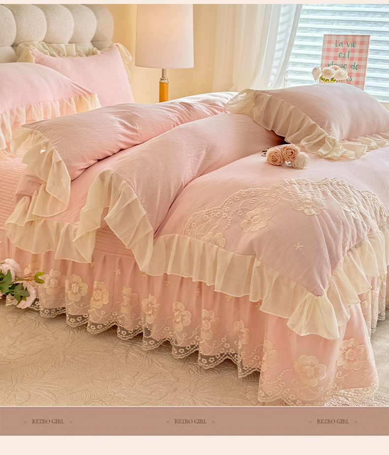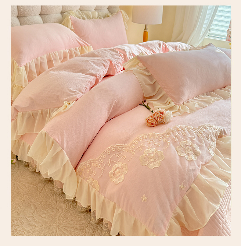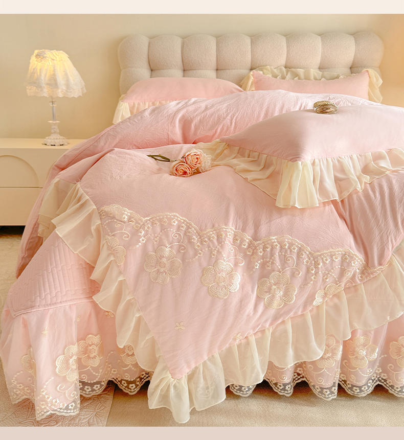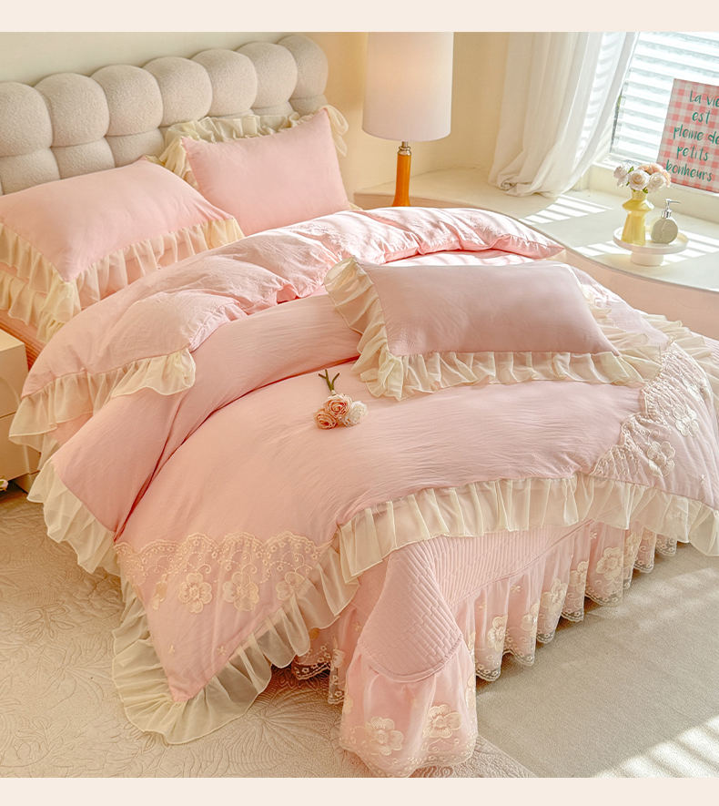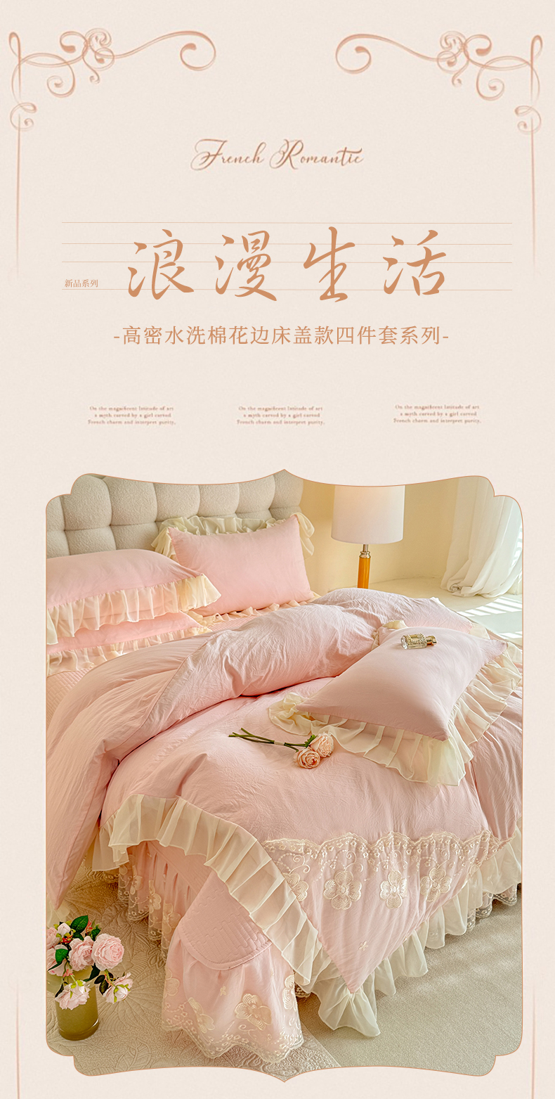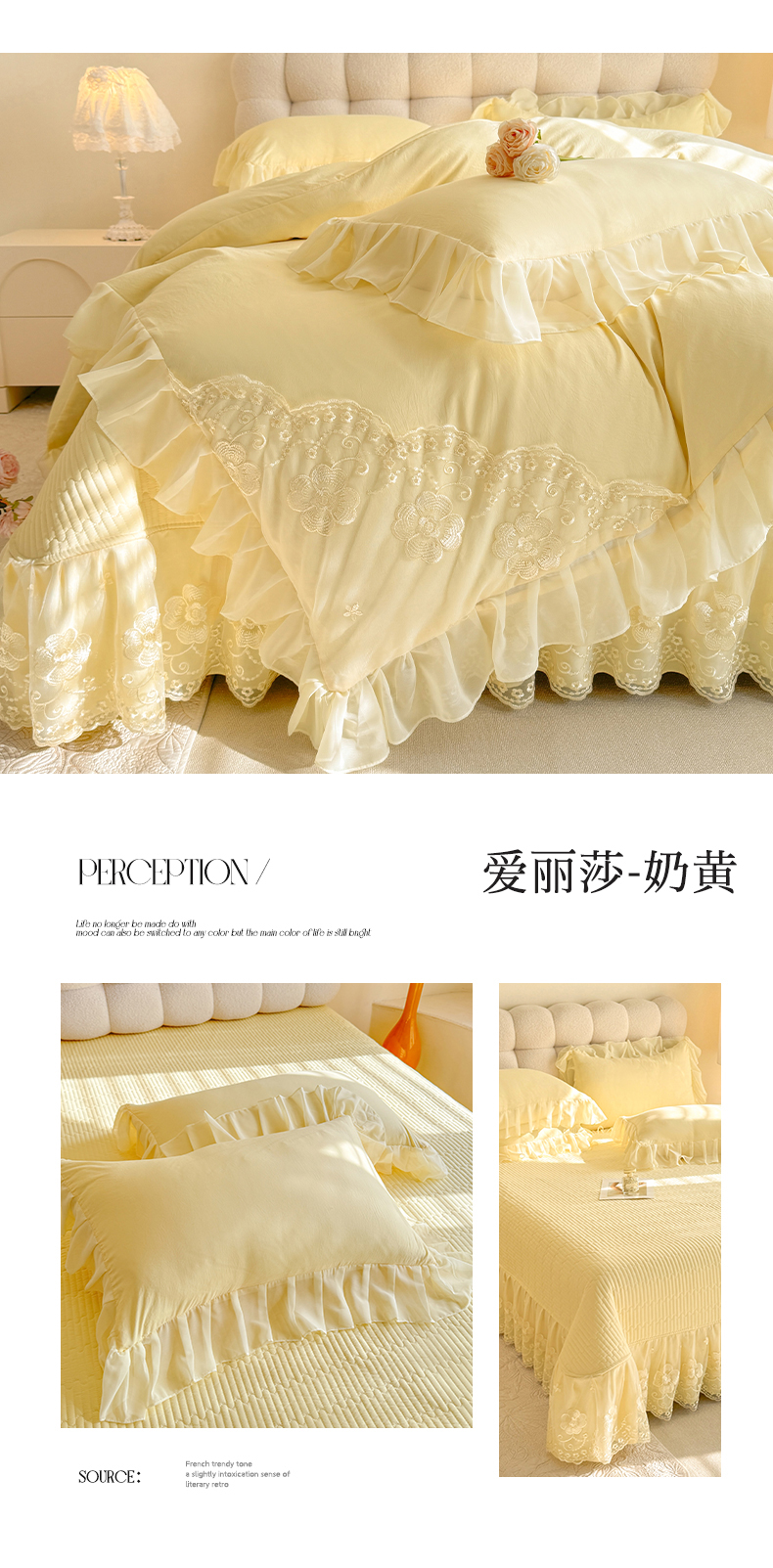 (总)迪梦姿家纺 2025新款简约纯色高密水洗棉花边床盖四件套-爱丽莎