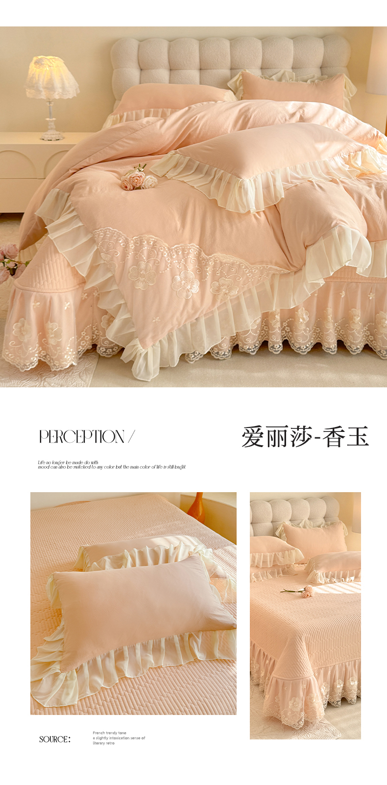 (总)迪梦姿家纺 2025新款雕花牛奶绒蕾丝花边款床单床盖四件套,佳人有约-粉色,佳人有约-天蓝,佳人有约-玉色,佳人有约-芋紫