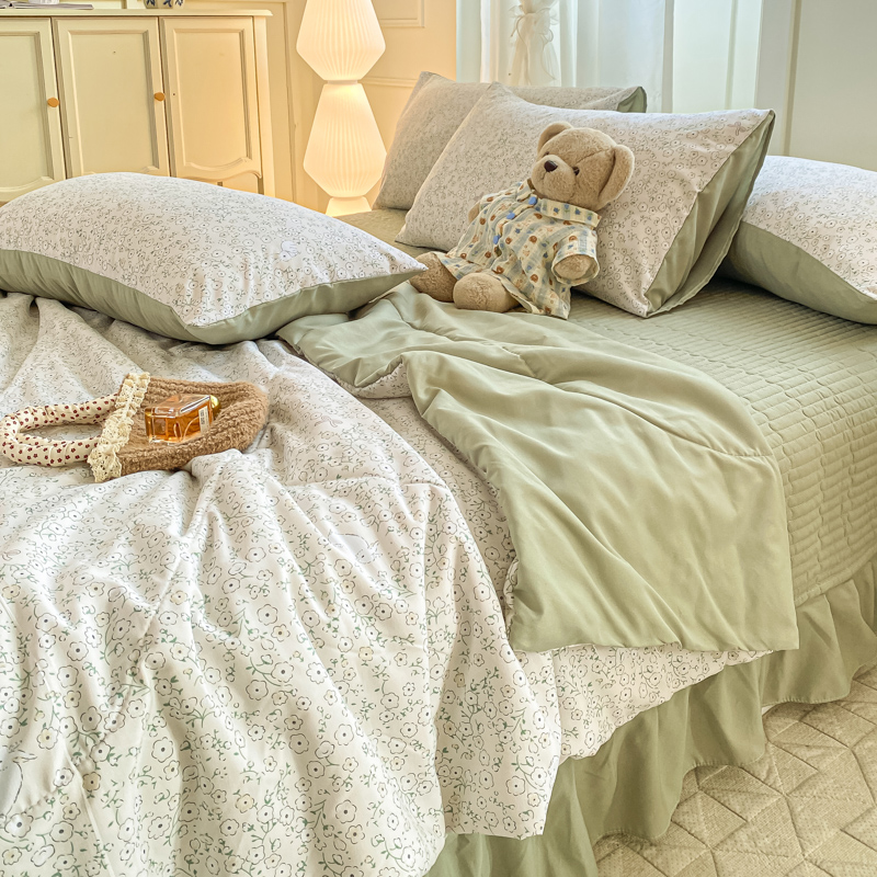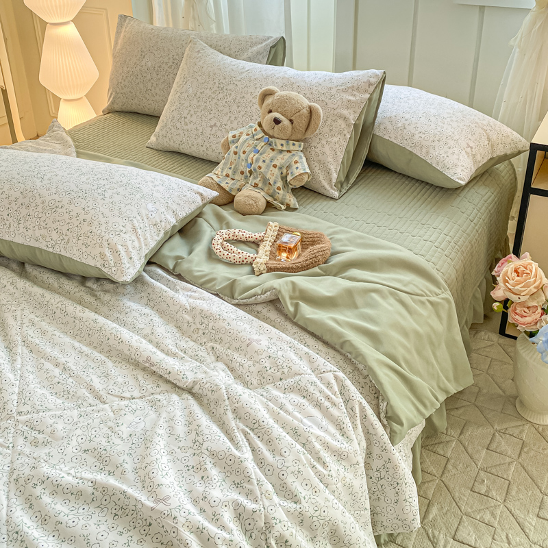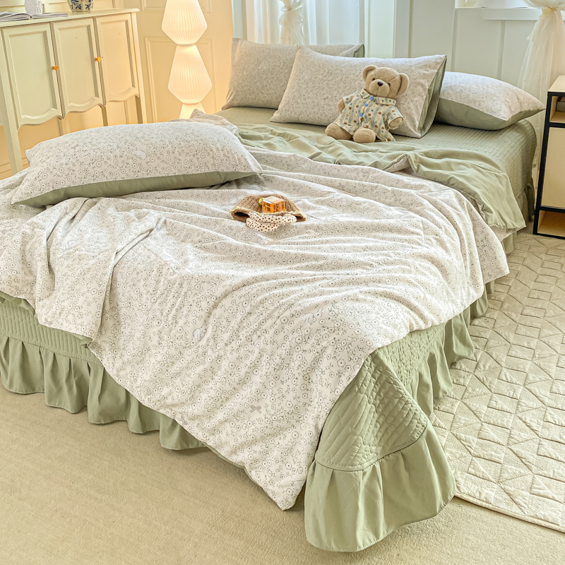 2025新款针织双层纱夏被床盖四件套单夏被单床盖单品 花与兔