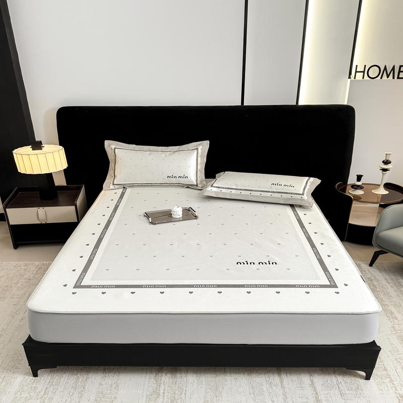 商品名称:木希2025春夏新款可水洗冰丝席幻彩刺绣床笠系列-场景二 格调爱心