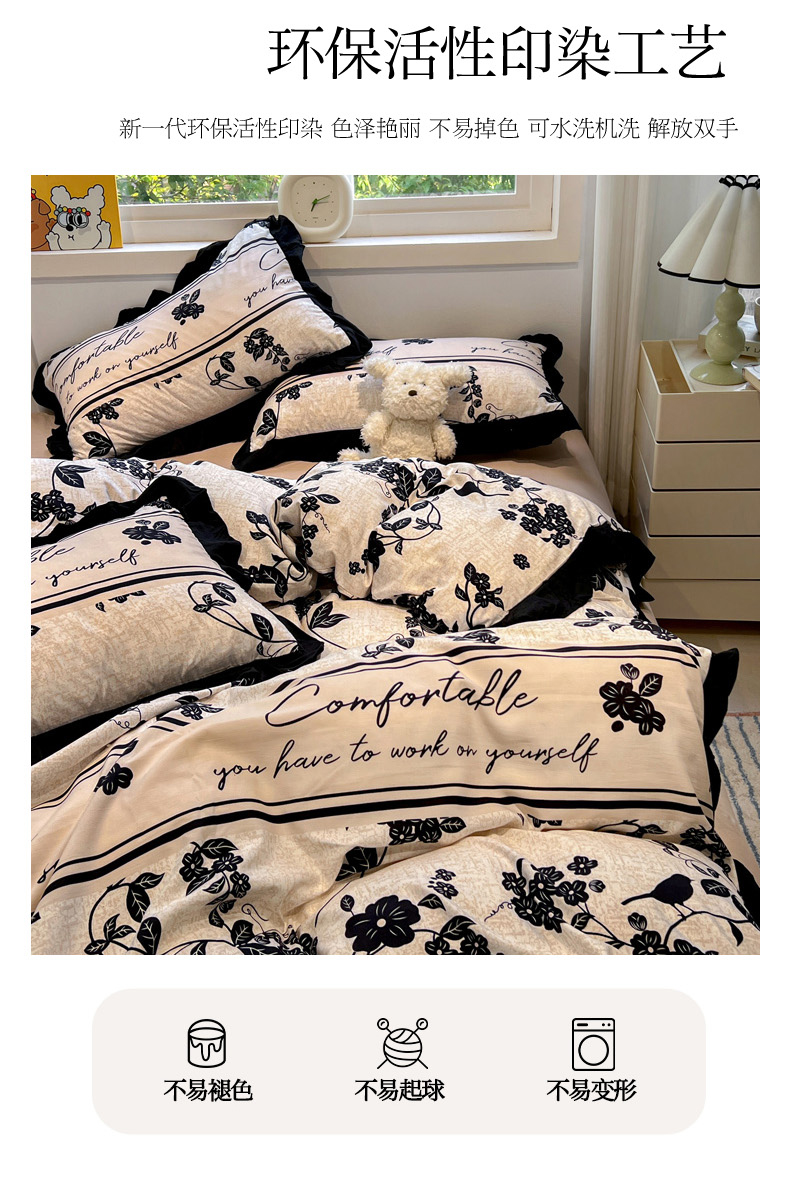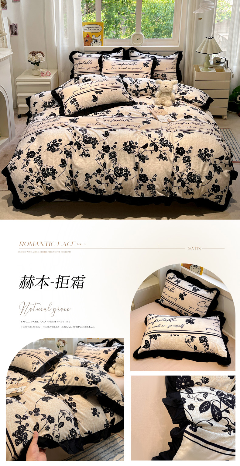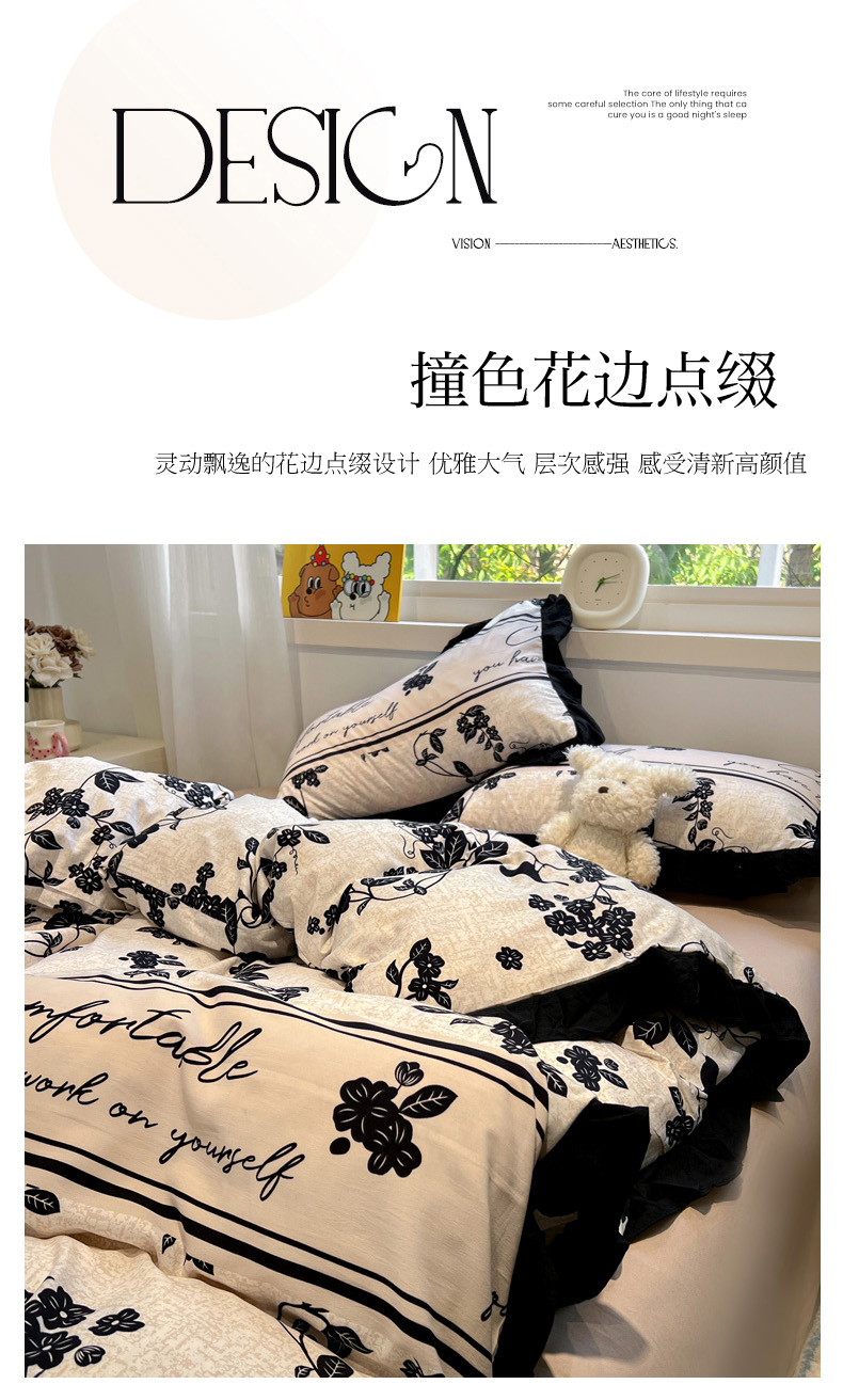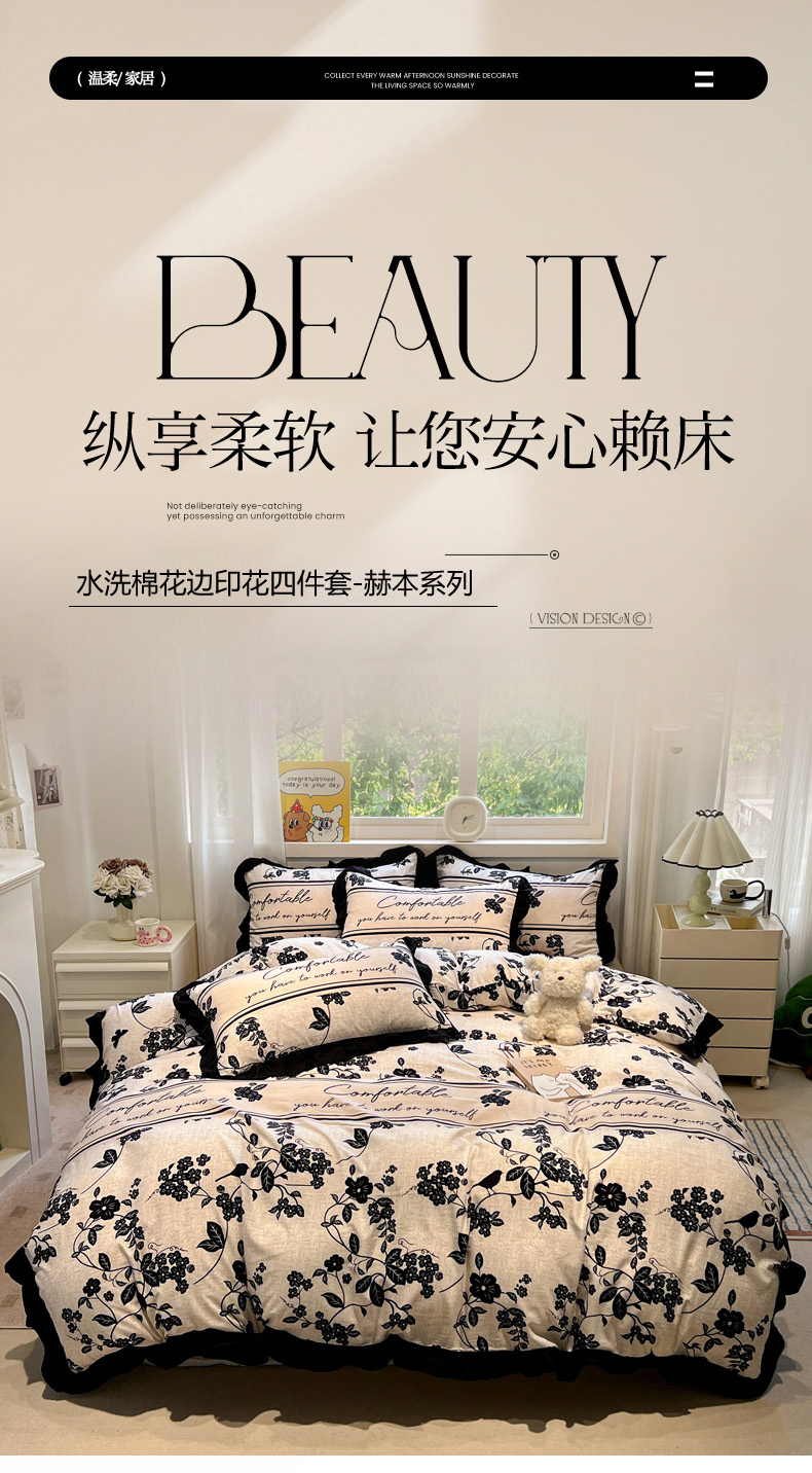 当前位置: 91家纺网 > 商品网购 > 床品套件 > 四件套 > 水洗棉四件套 > 花伞家居 2025新款赫本黑色大花边水洗棉印花四件套(提供买家秀) 赫本-拒霜