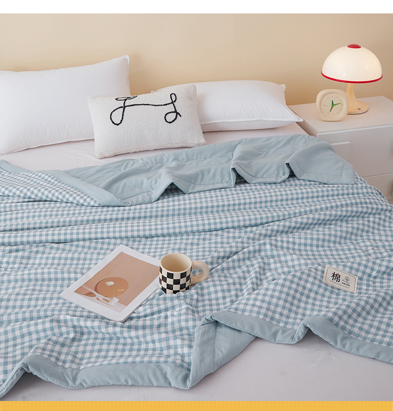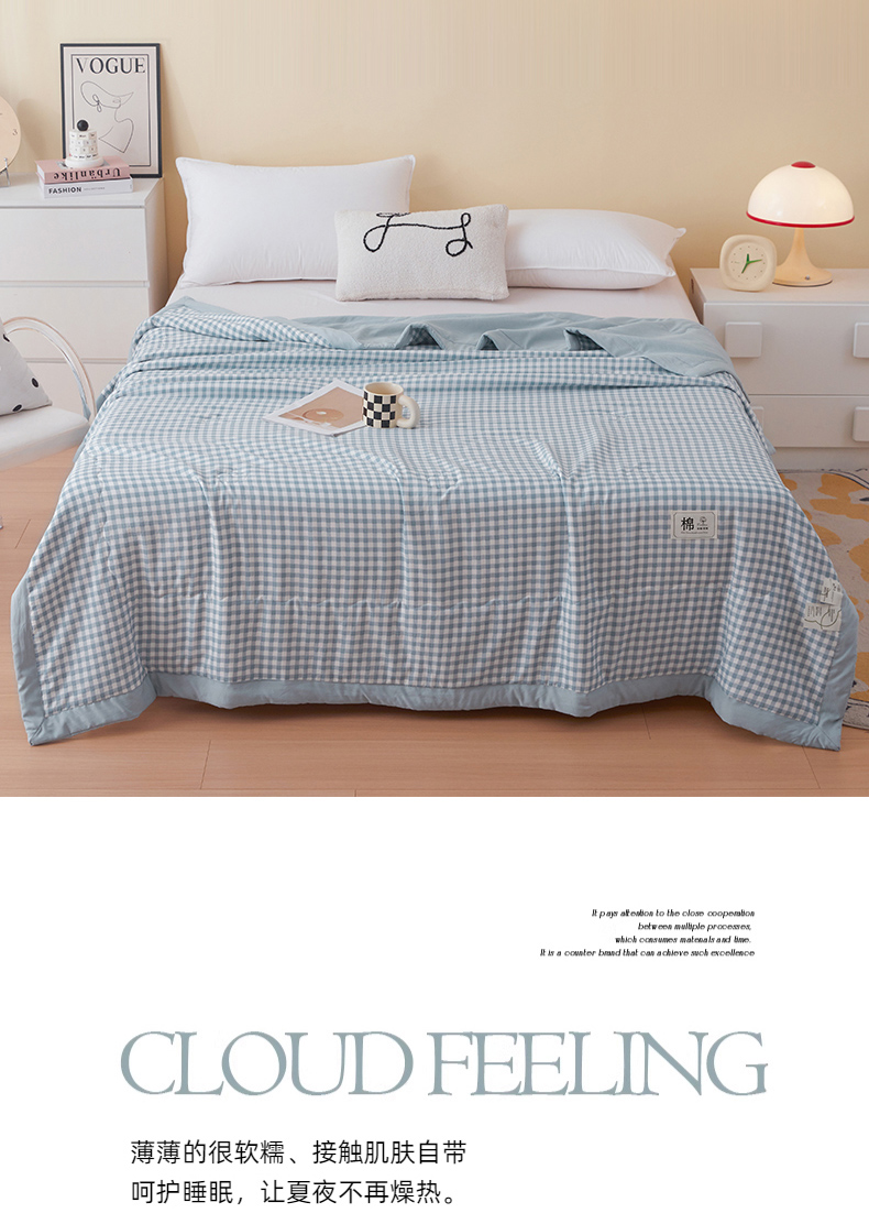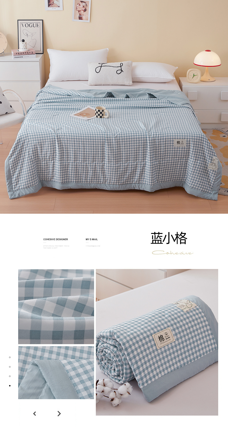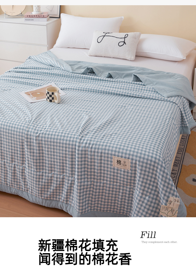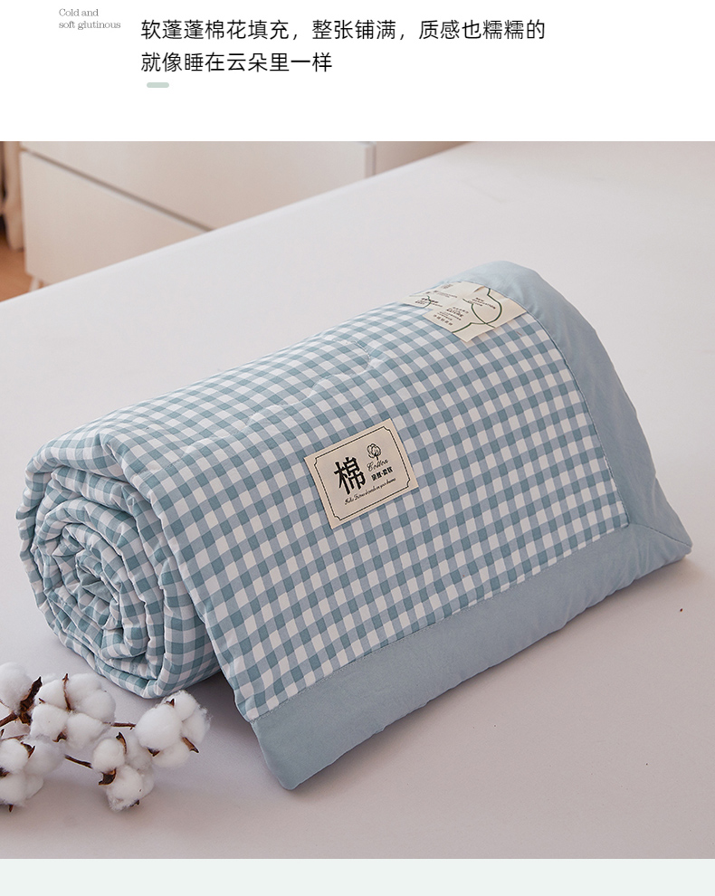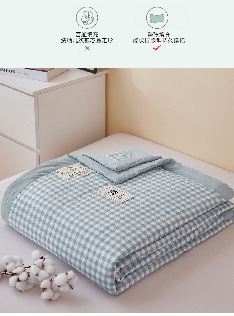 简冠家纺 2025新款水洗棉新疆棉花夏被 蓝小格
