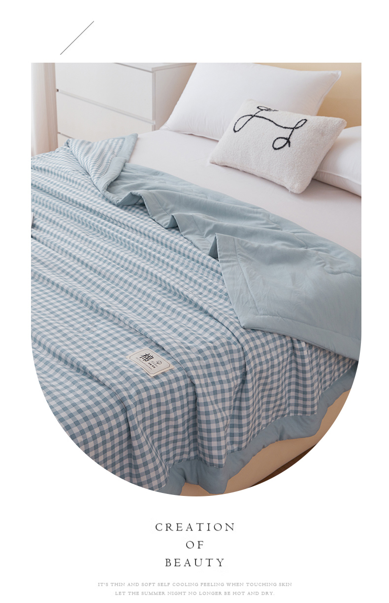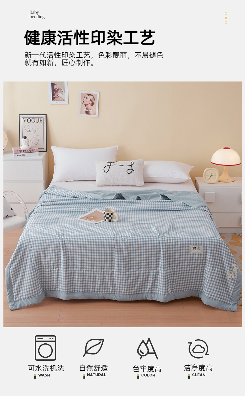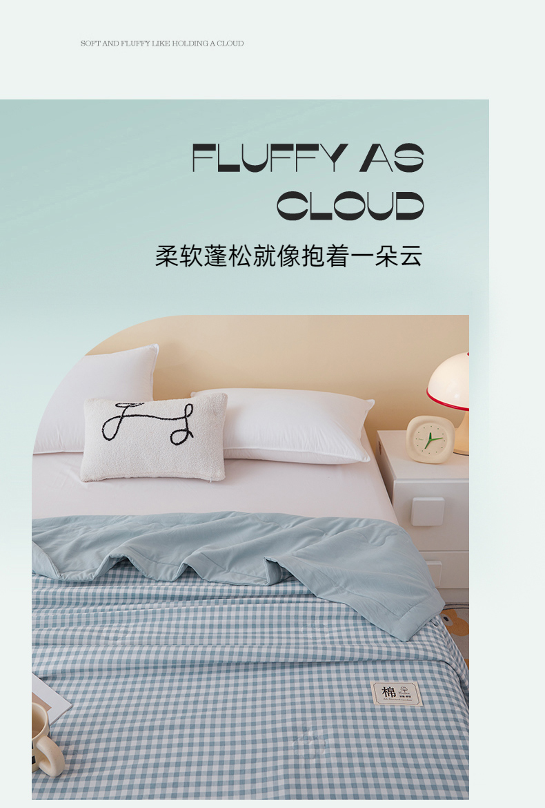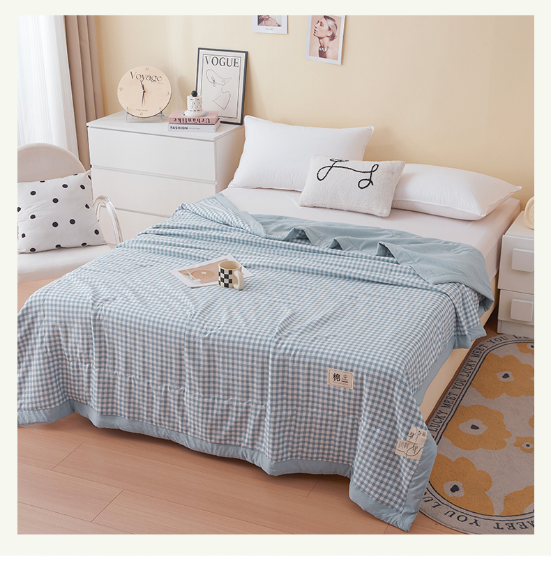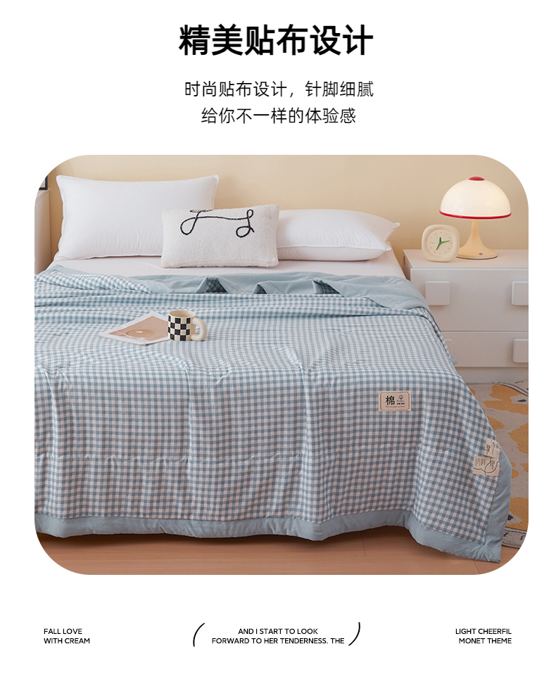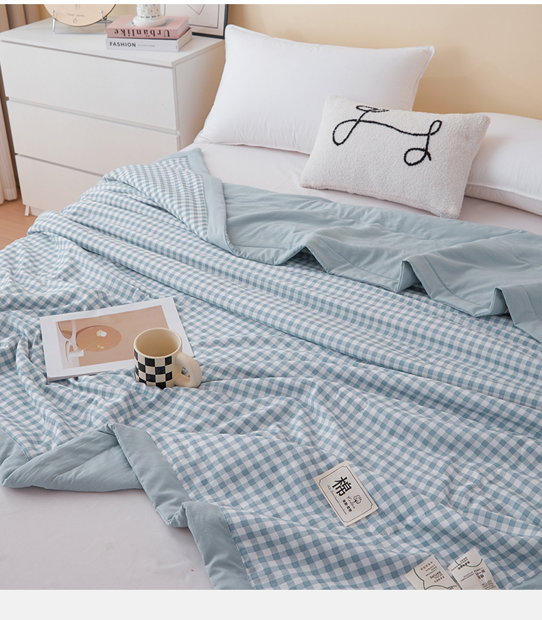 简冠家纺 2025新款水洗棉新疆棉花夏被 蓝小格