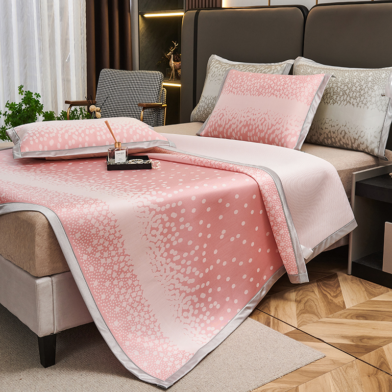 悦织湾家纺2025新款三明治碳光提花冰藤席三件套2025新款夏凉席冰丝席子藤席轻奢时尚电商直播热销款 波点-粉