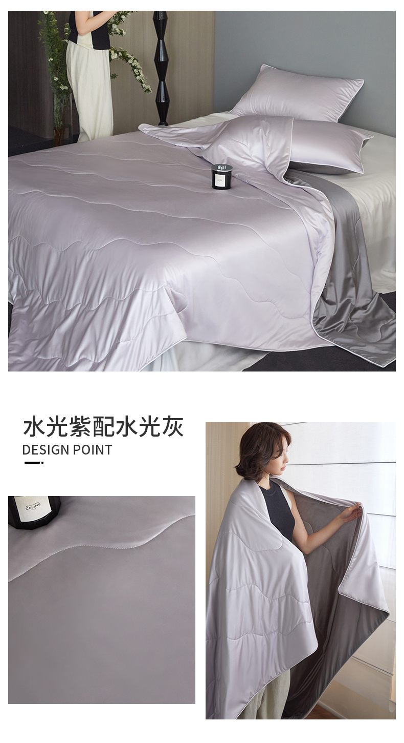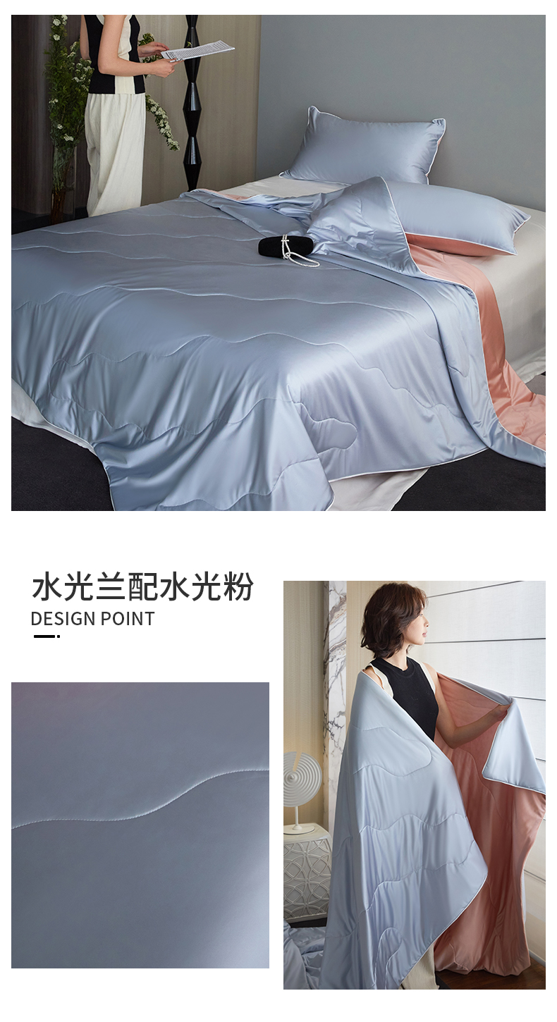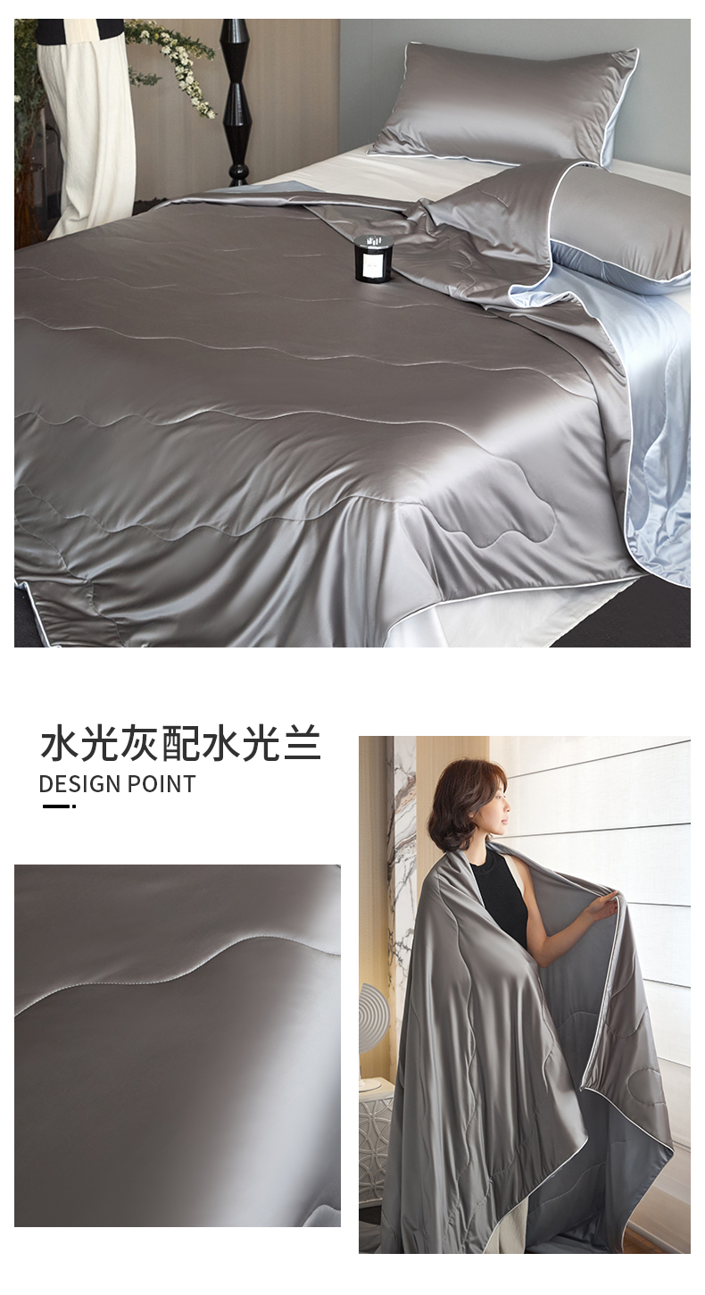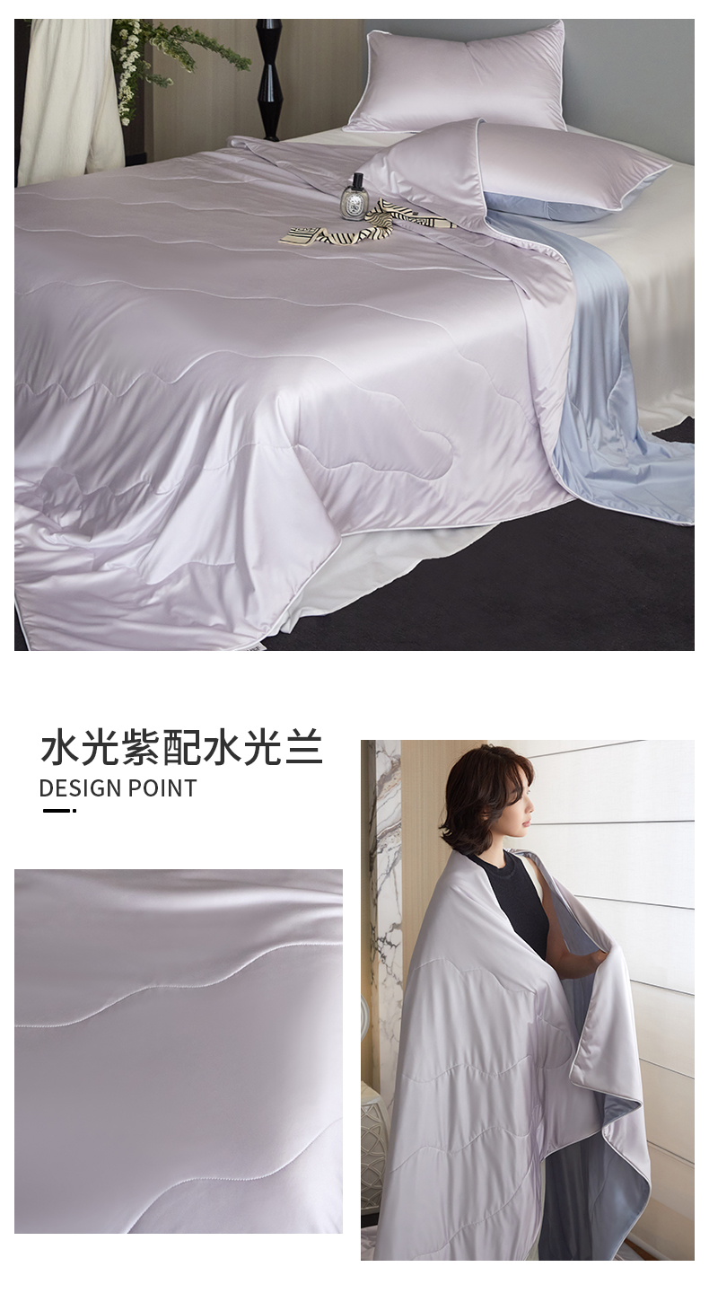 商品名称:(总)头等舱 2025新款水光缎冰肌锦氨A类55植物大豆7A抗菌夏被配包装模特图