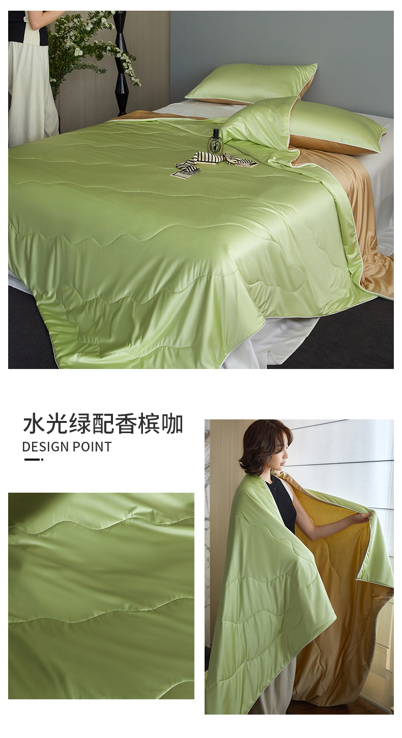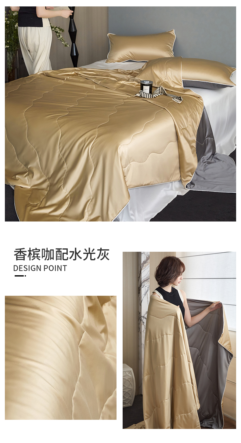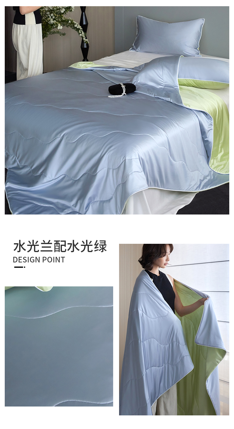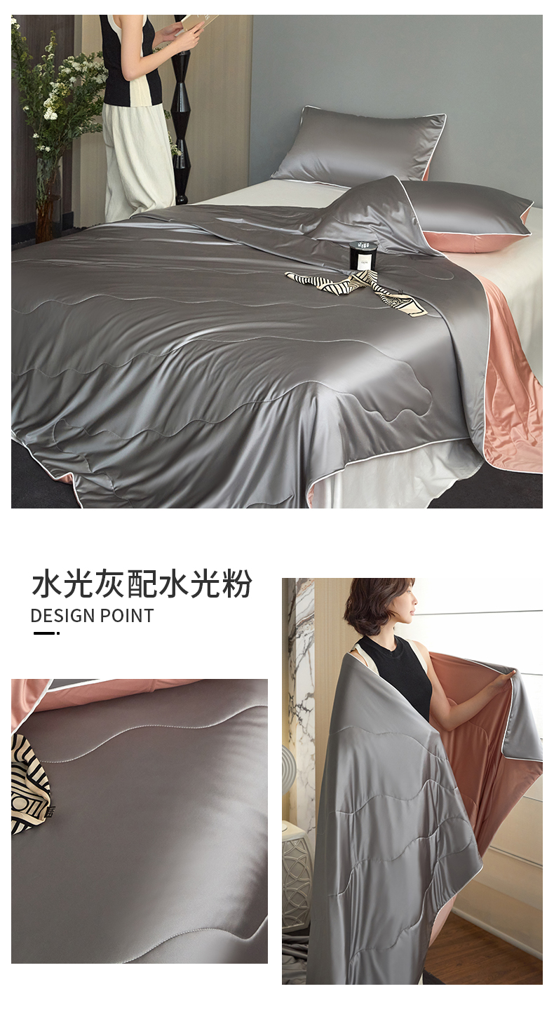 商品名称:(总)头等舱 2025新款水光缎冰肌锦氨A类55植物大豆7A抗菌夏被配包装模特图