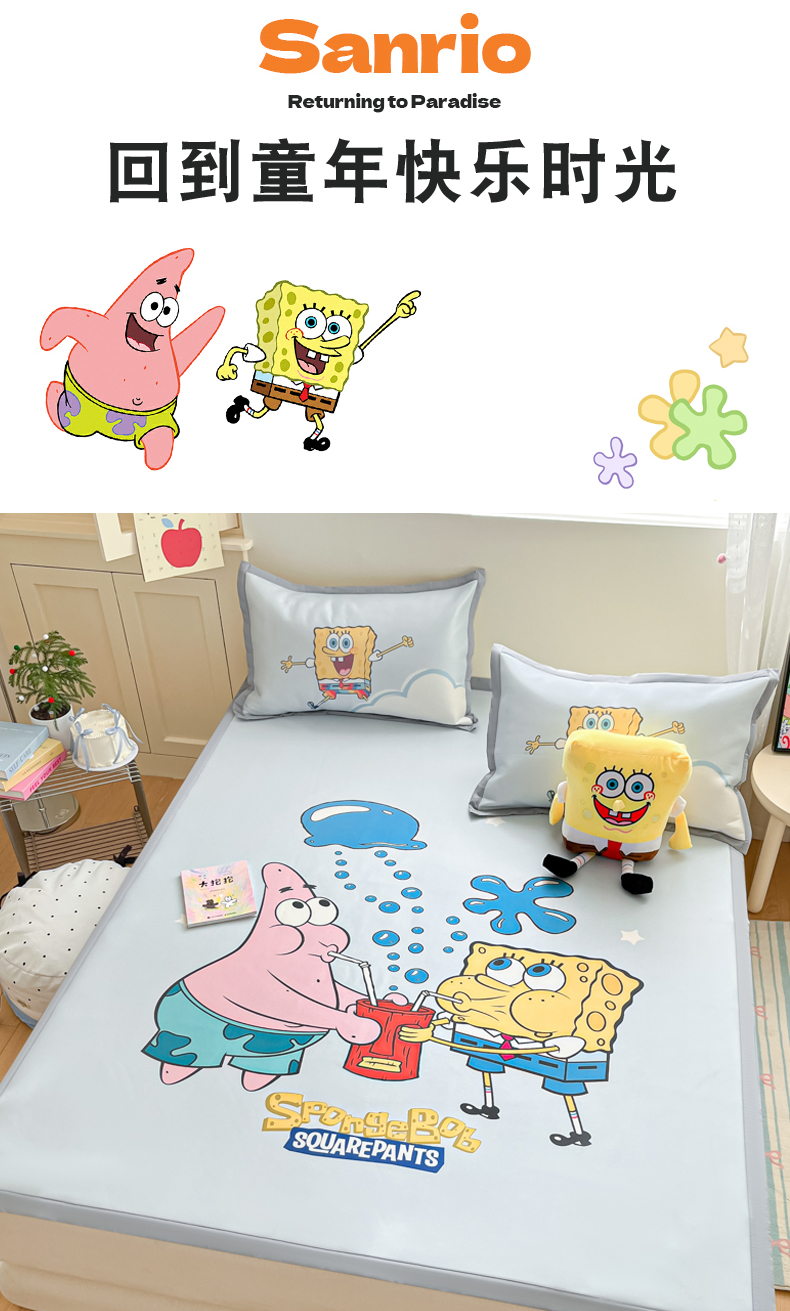 金爱家 2025新款冰丝凉席海绵宝宝 冰丝-泡泡海绵宝宝