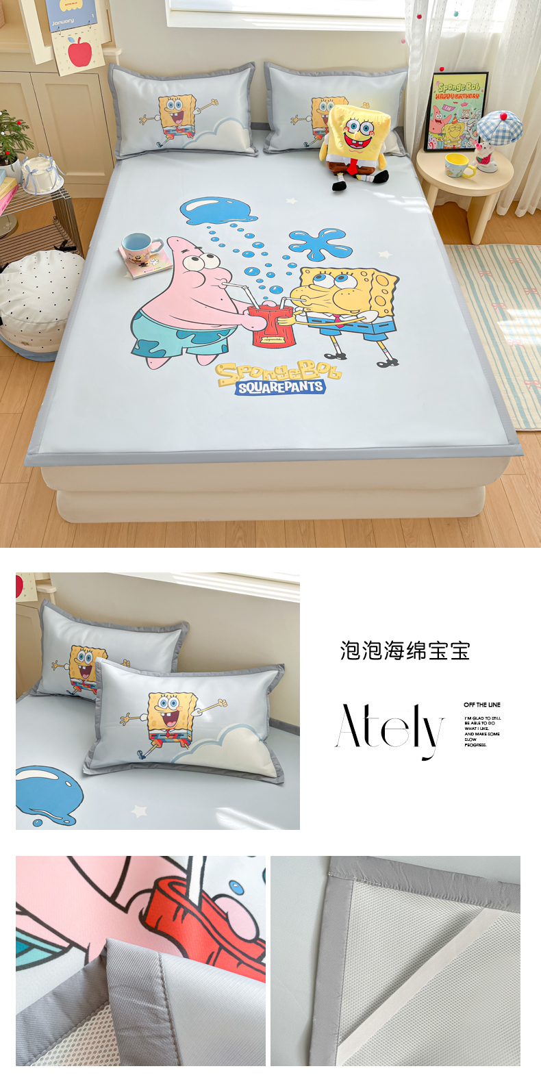 商品名称:金爱家 2025新款冰丝凉席海绵宝宝 冰丝-泡泡海绵宝宝