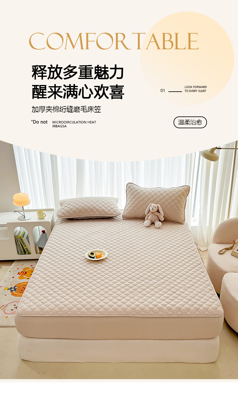 (总)云木里 2025新款速暖豆豆绒夹棉床笠,黑白,卡其,抹茶绿,浅灰,雾霾蓝,樱花粉