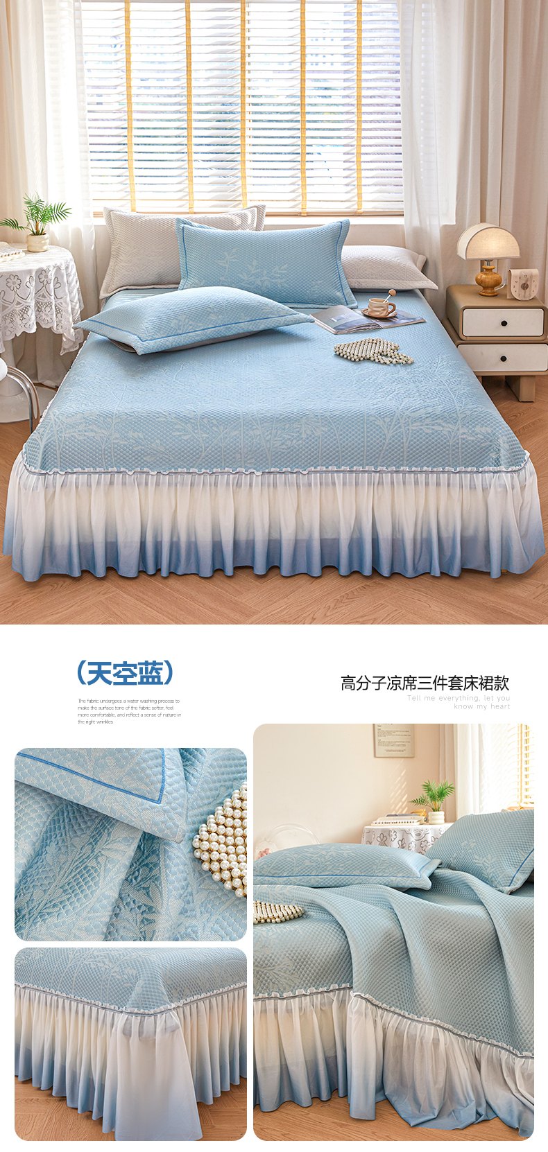 商品名称:桂雅居 2025春夏新款高分子凉席三件套床裙款 天空蓝