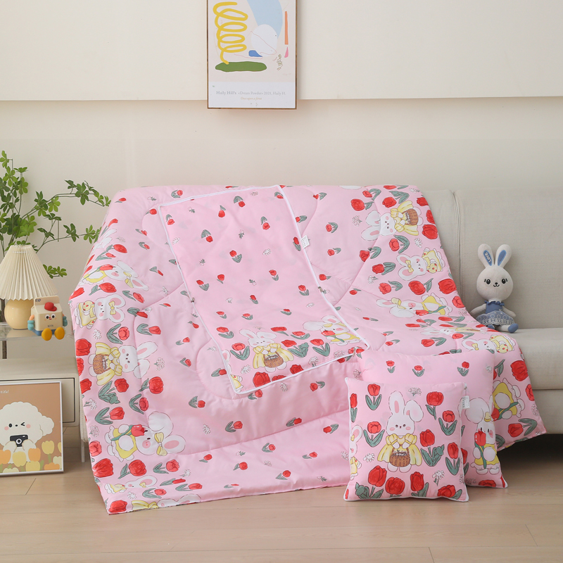 铭宣家居 2025新增花型 亲肤柔软棉被抱枕被-花园小兔
