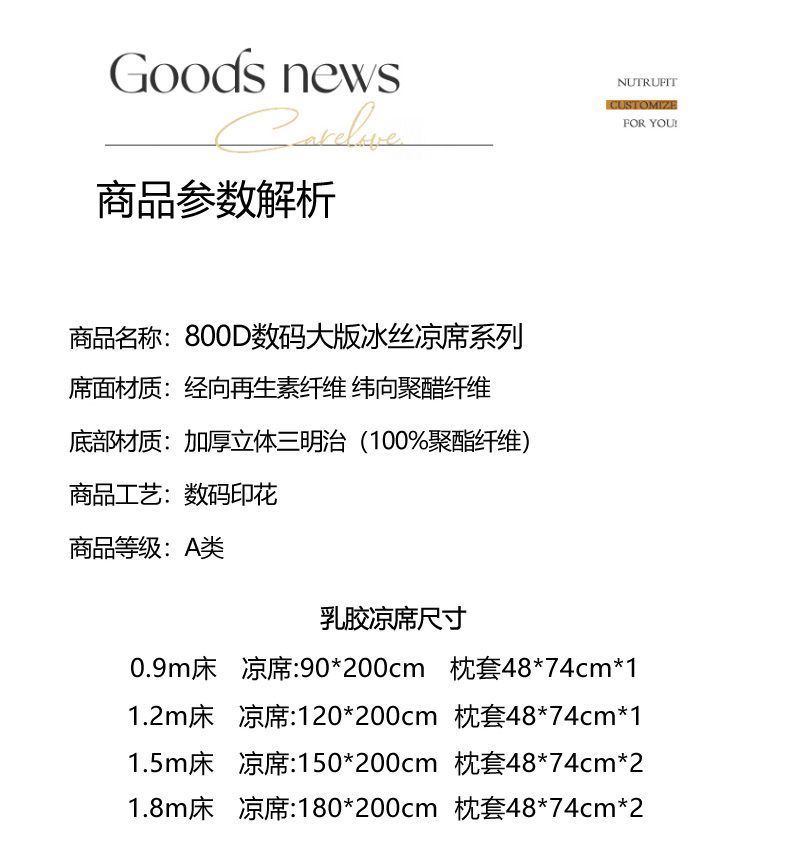 商品名称:倾慕家纺 800D数码大版冰丝凉席 熊宝宝乐园