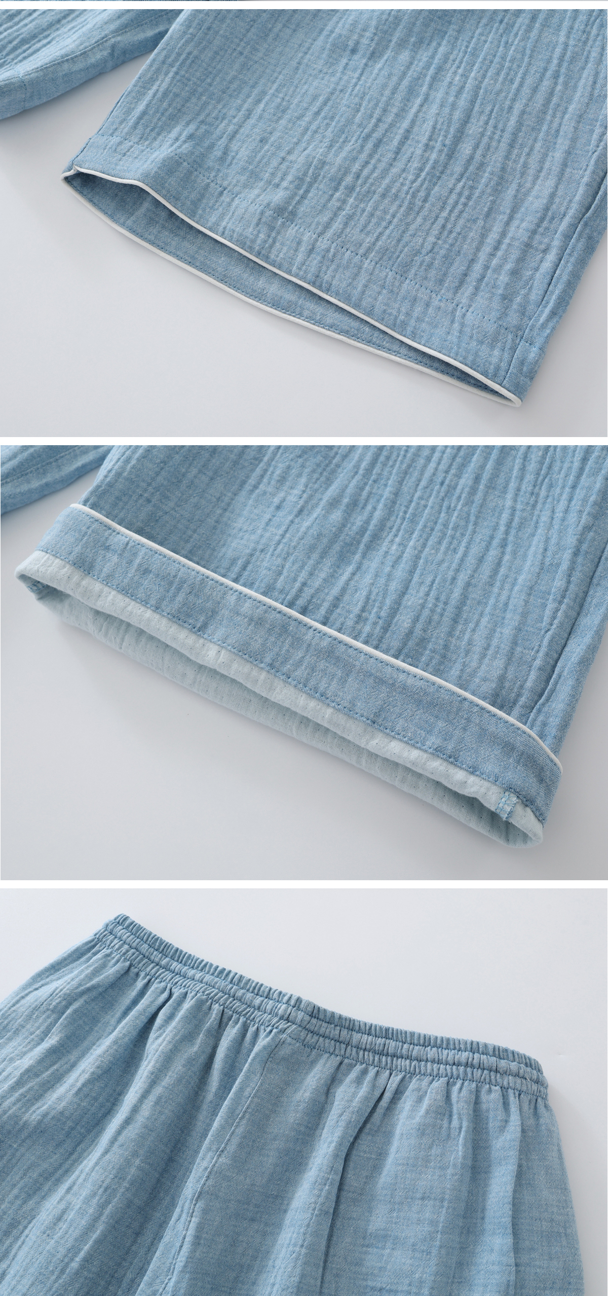 (总)伊嫚家居日式无印风良品全棉双层纱睡衣男纯棉短袖睡衣夏季皱纱短裤家居服,男海蓝色短袖短裤,男深灰色短袖短裤,男烟蓝色短袖短裤