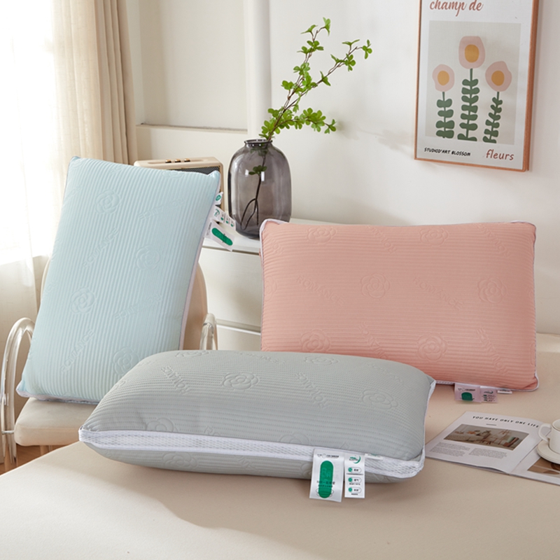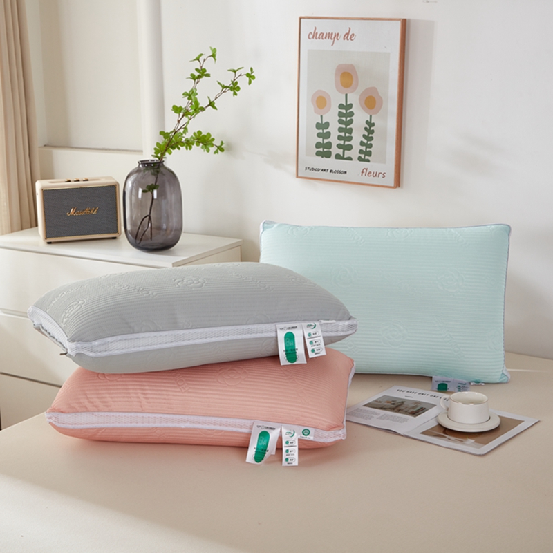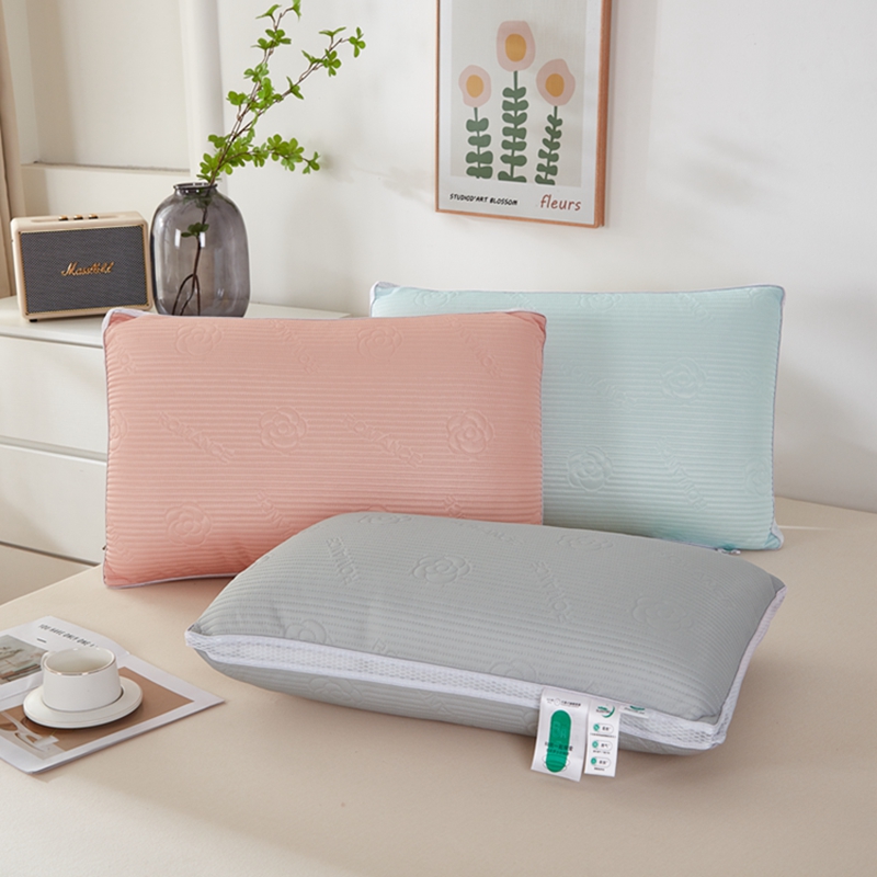 (总)幸运草 2025新款仙丝本草绗绣枕头 单人成人家用护颈枕枕芯,粉色一只,灰色一只,蓝色一只