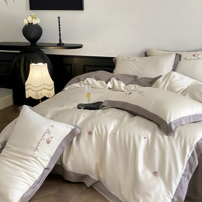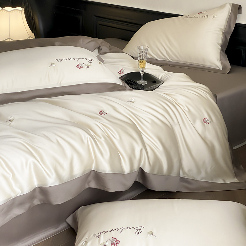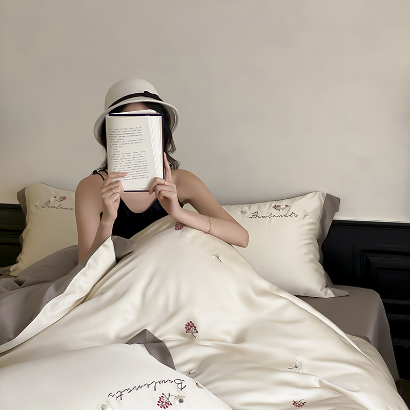 (总)时亿 2023新款100支长绒棉四件套心晴,心晴-粉,心晴-灰,心晴-蓝