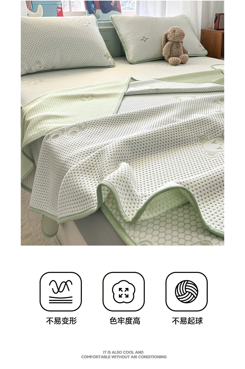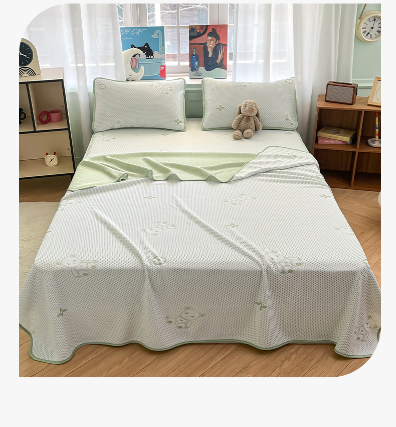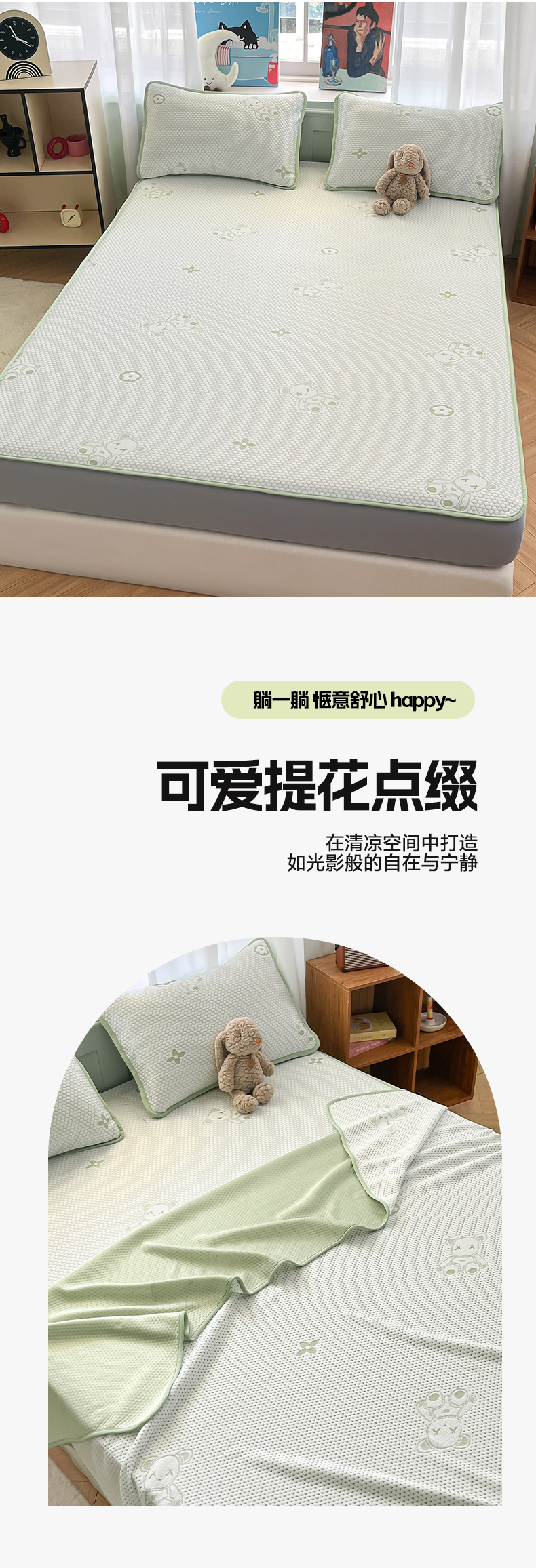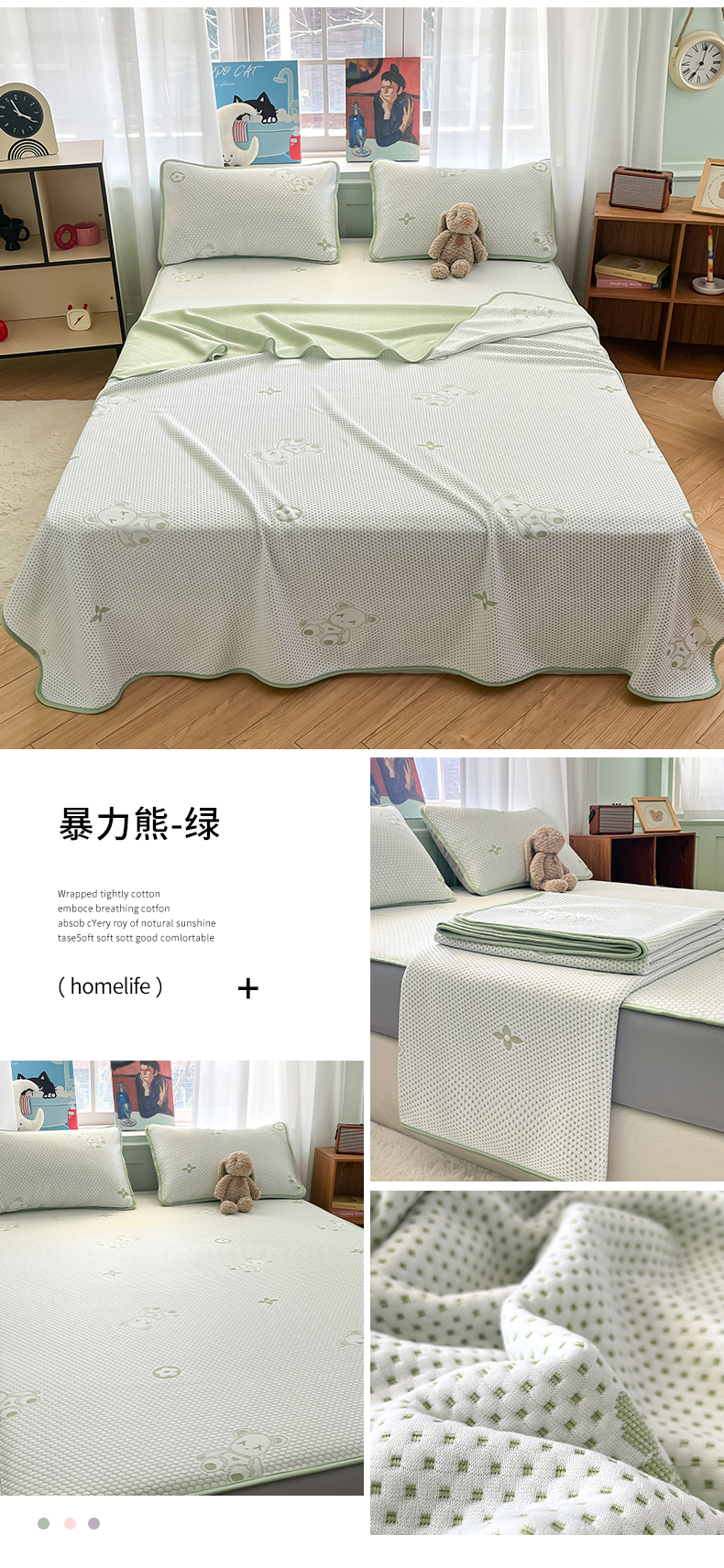 绘萱家居 2025爆款冰凉豆豆凉席夏被四件套三件套床笠款冰丝软席子 暴力熊-绿