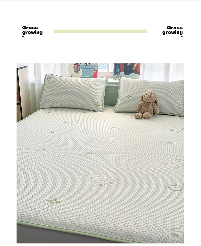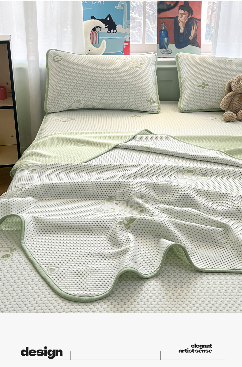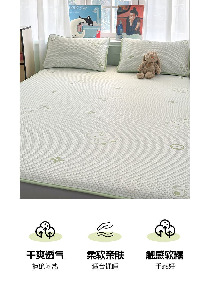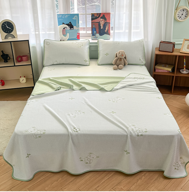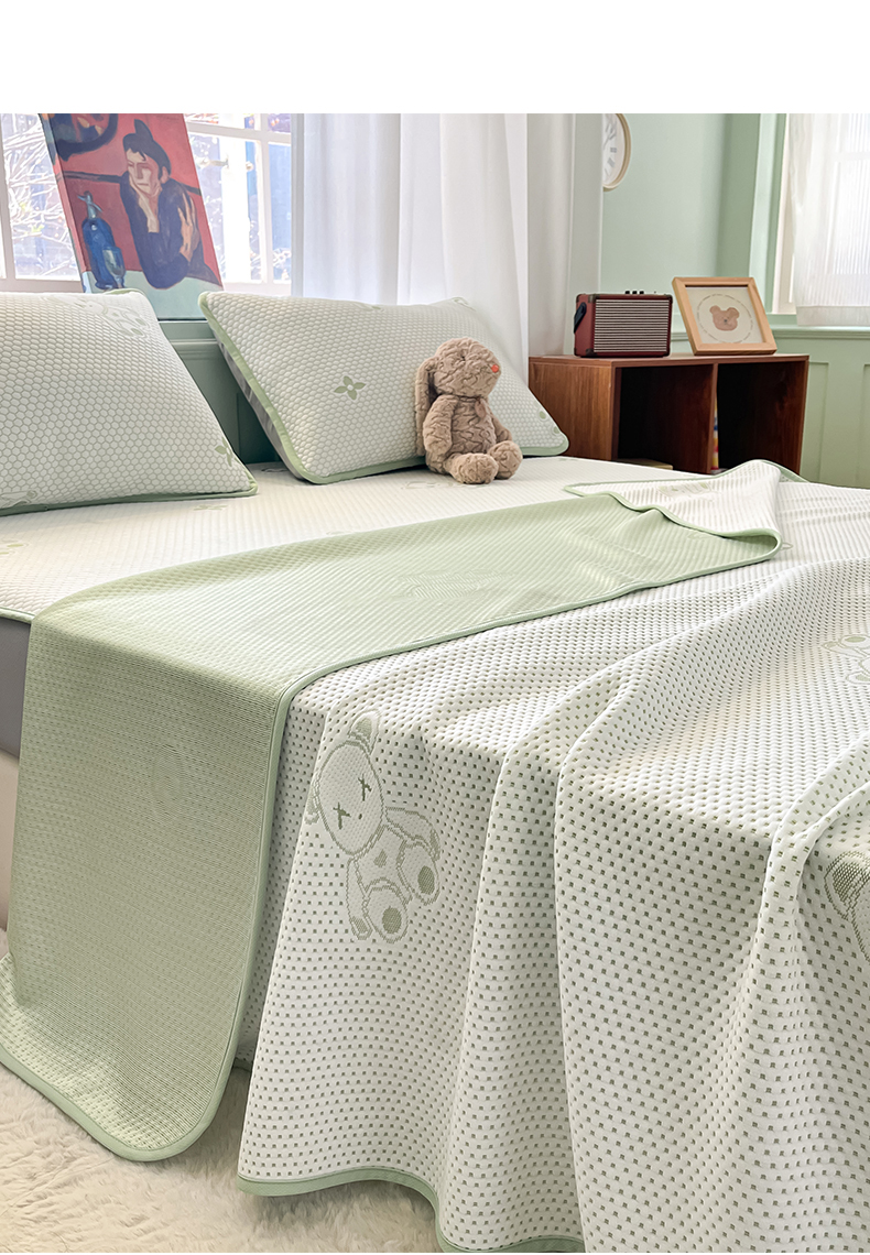 绘萱家居 2025爆款冰凉豆豆凉席夏被四件套三件套床笠款冰丝软席子 暴力熊-绿
