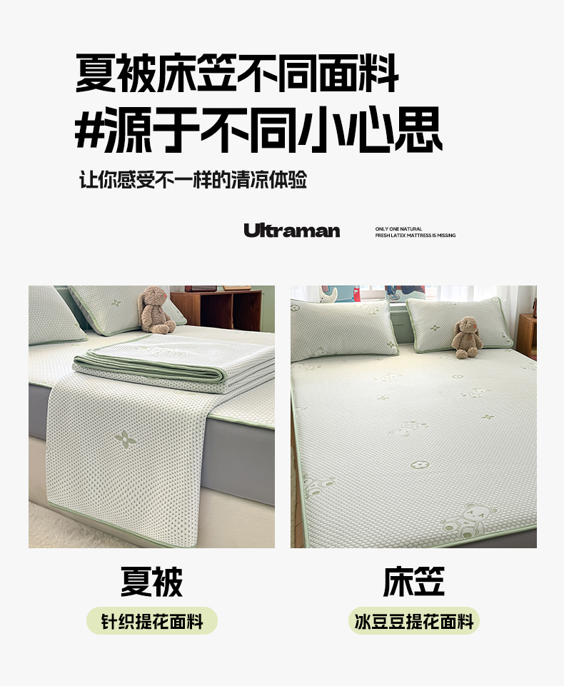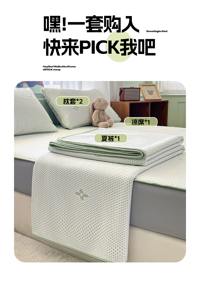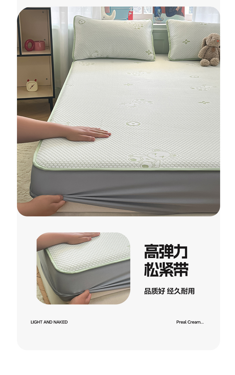 商品名称:绘萱家居 2025爆款冰凉豆豆凉席夏被四件套三件套床笠款冰丝软席子 暴力熊-绿