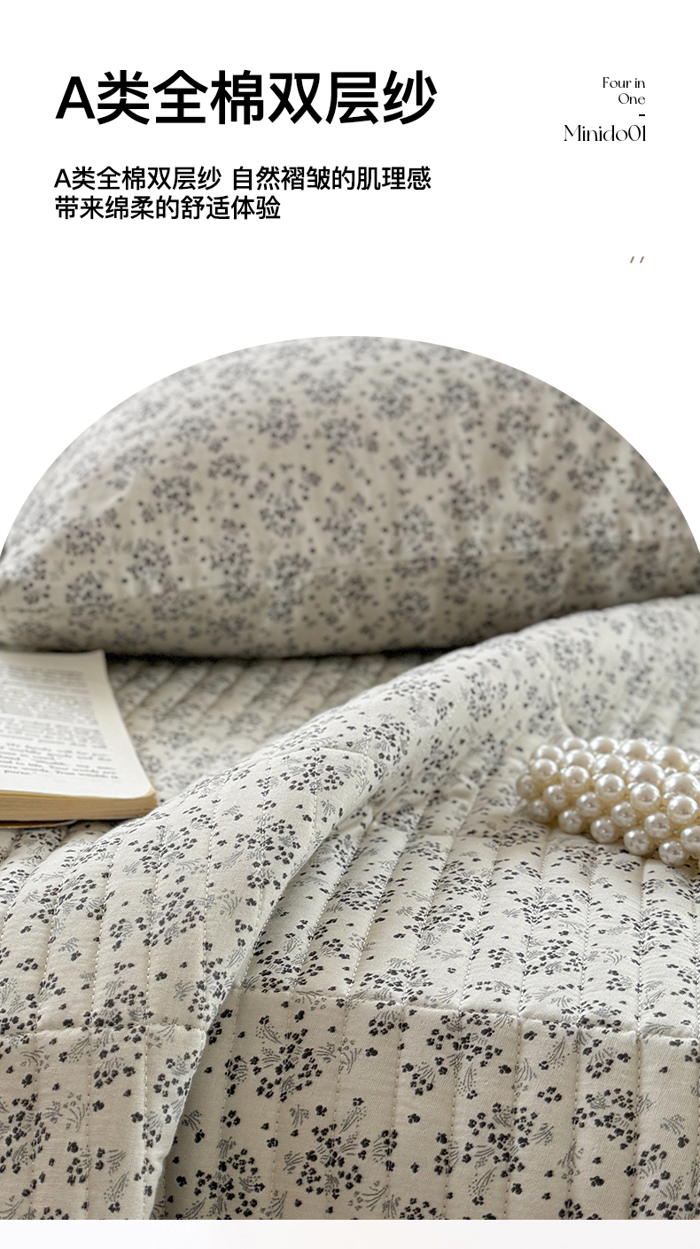 商品名称:TT.one 塔塔家居 2025新款全棉双层纱贝壳边夏被系列 床盖·素予