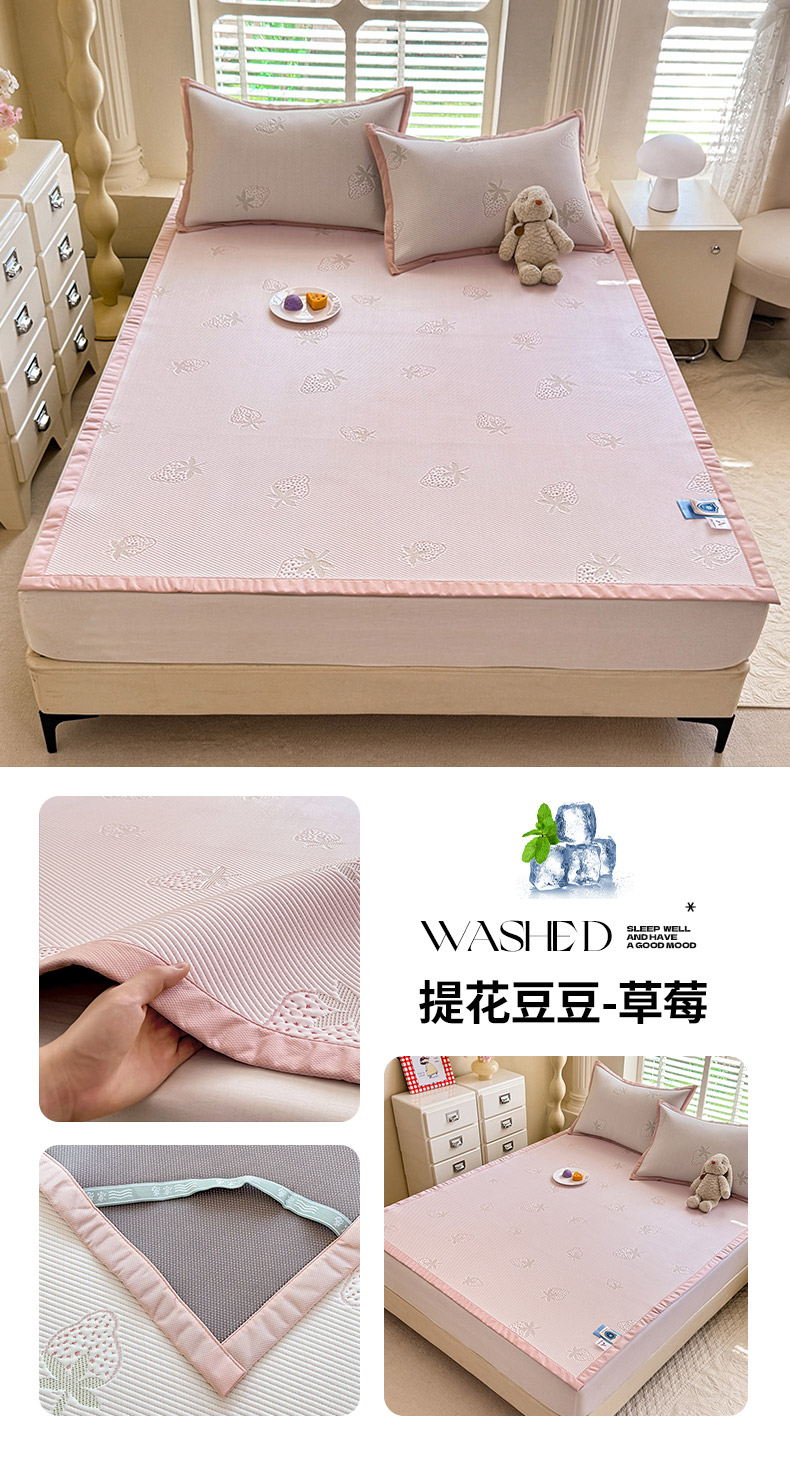 商品名称:绒世界 2025新款A类提花凉感豆豆复合凉席套件 提花豆豆-草莓