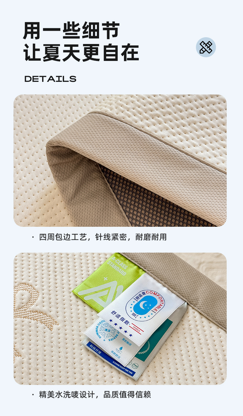商品名称:(总)丝印良品 2025新款A类提花凉感豆豆复合凉席套件