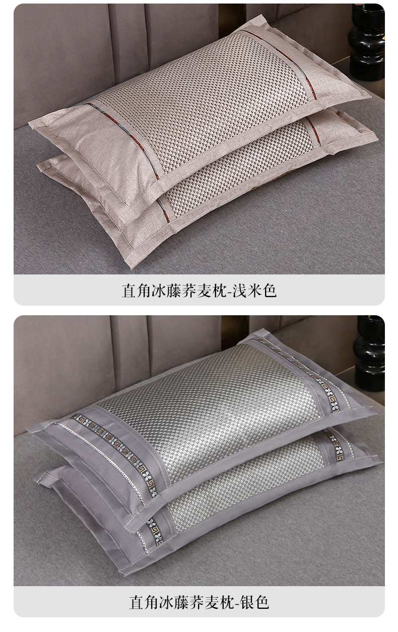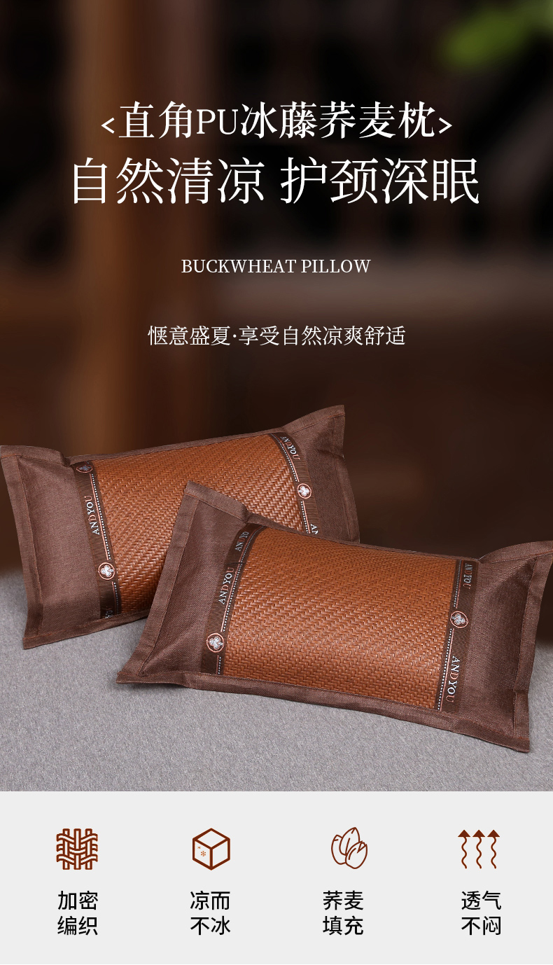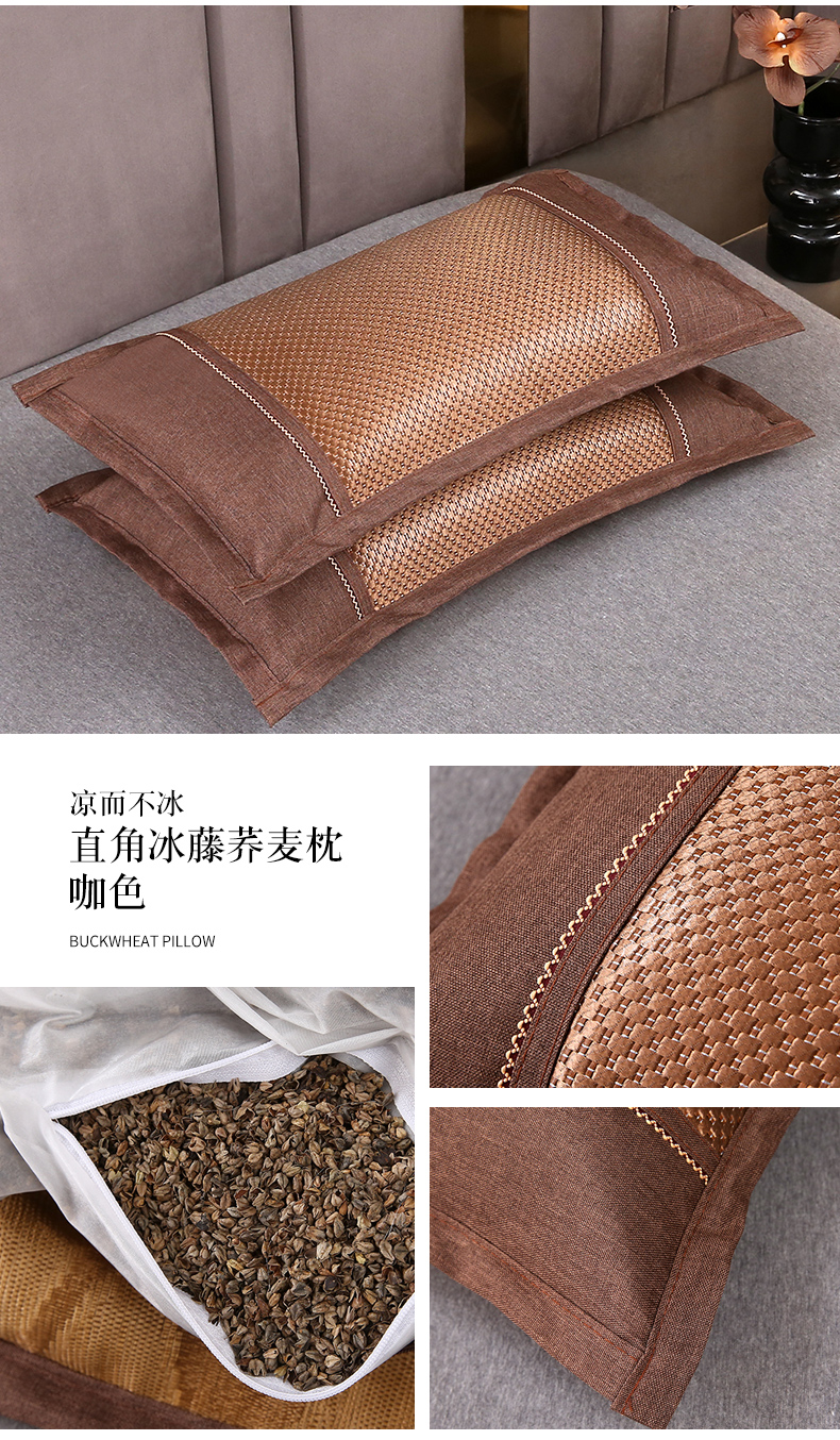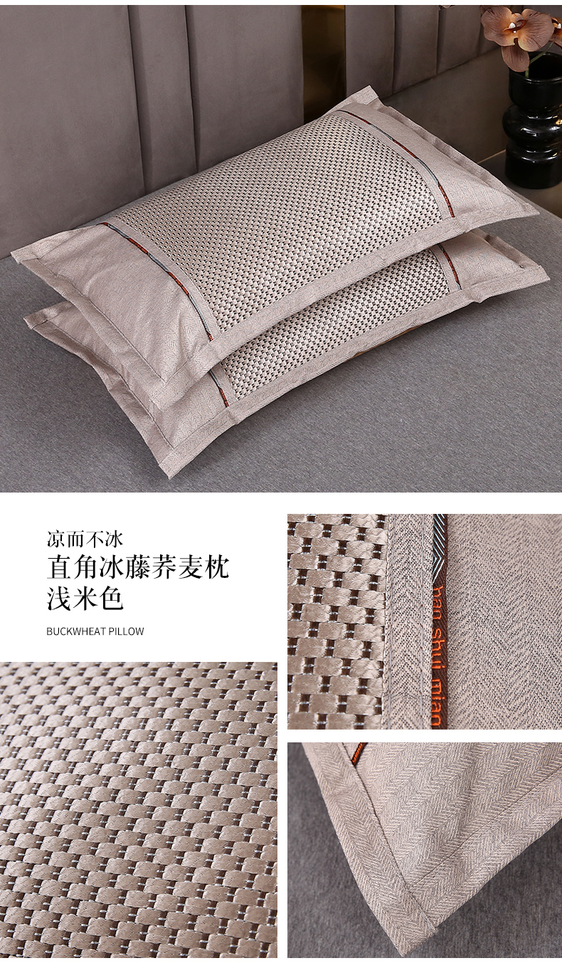 商品名称:纽乐家纺 2025新款全荞麦壳枕头夏季冰丝藤席枕芯冰藤荞麦枕竹面凉席枕头 直角冰藤荞麦枕-浅米色