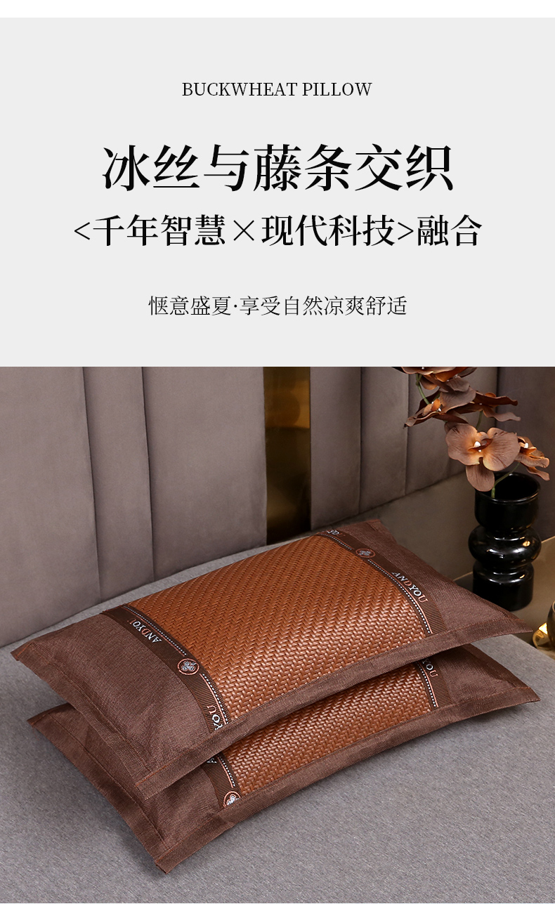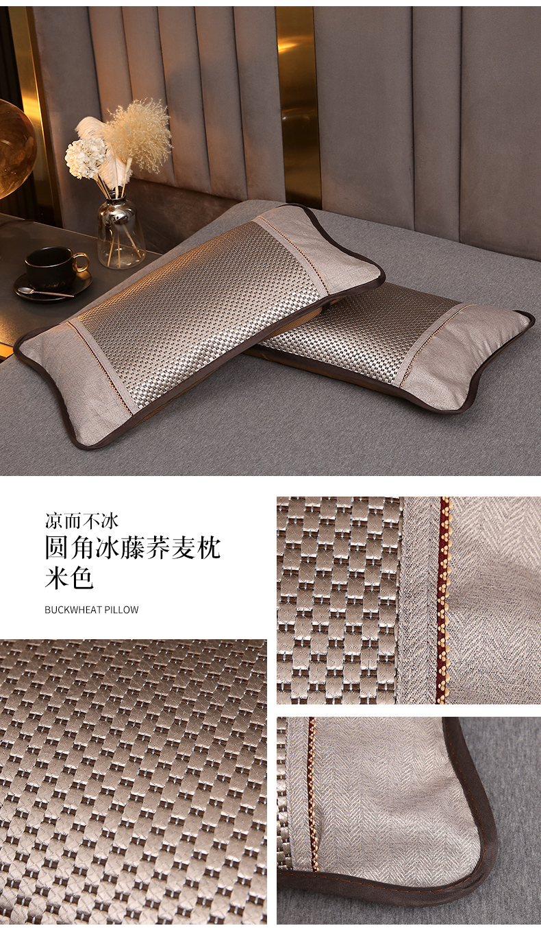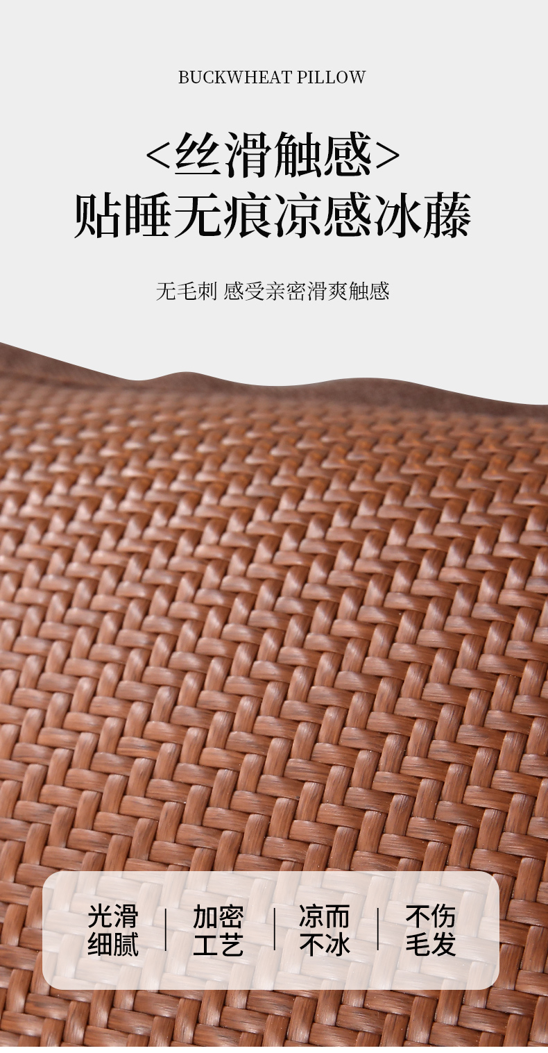 商品名称:纽乐家纺 2025新款全荞麦壳枕头夏季冰丝藤席枕芯冰藤荞麦枕竹面凉席枕头 直角冰藤荞麦枕-浅米色