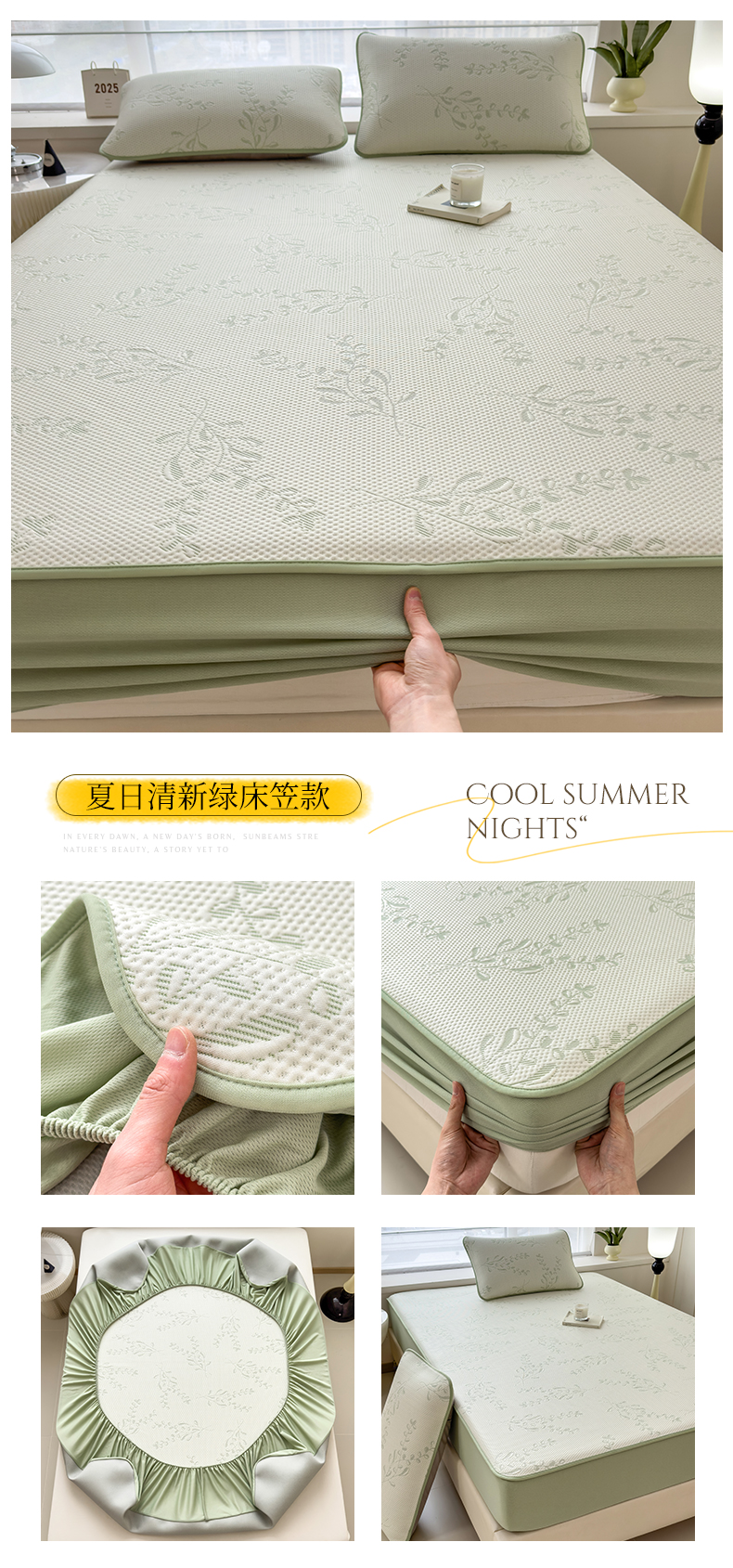 商品名称:2025年新款PE豆豆提花凉席花卉系列-床笠款 夏日清新绿