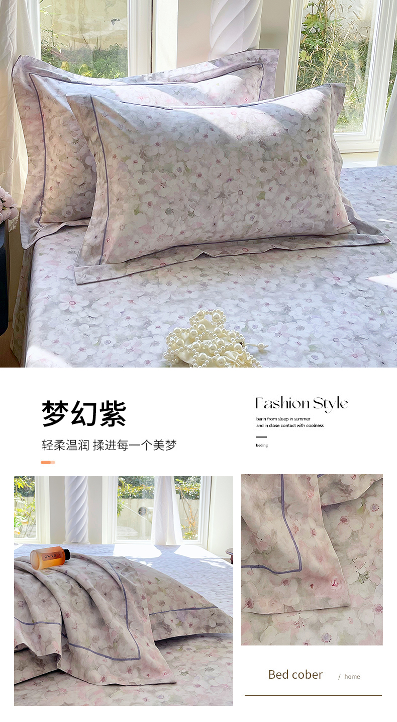 商品名称:宝齐莱家纺 2025新款13376全棉纯棉活性印花枕套单品单枕套枕套单件 梦幻紫-枕套