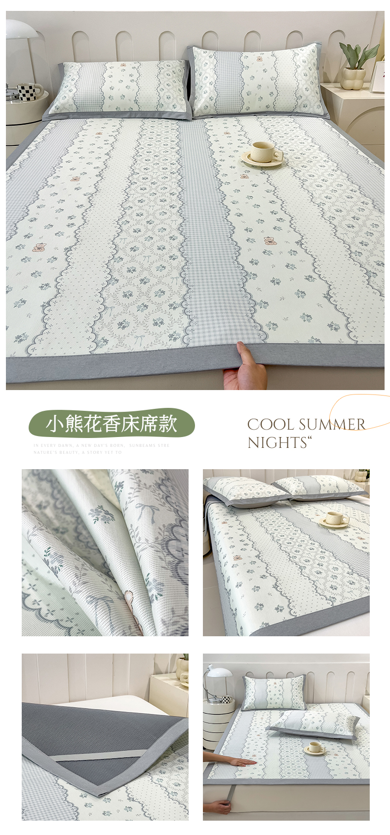 商品名称:倾慕家纺 2025年新款600D丝滑冰丝凉席-床席款 小熊花香