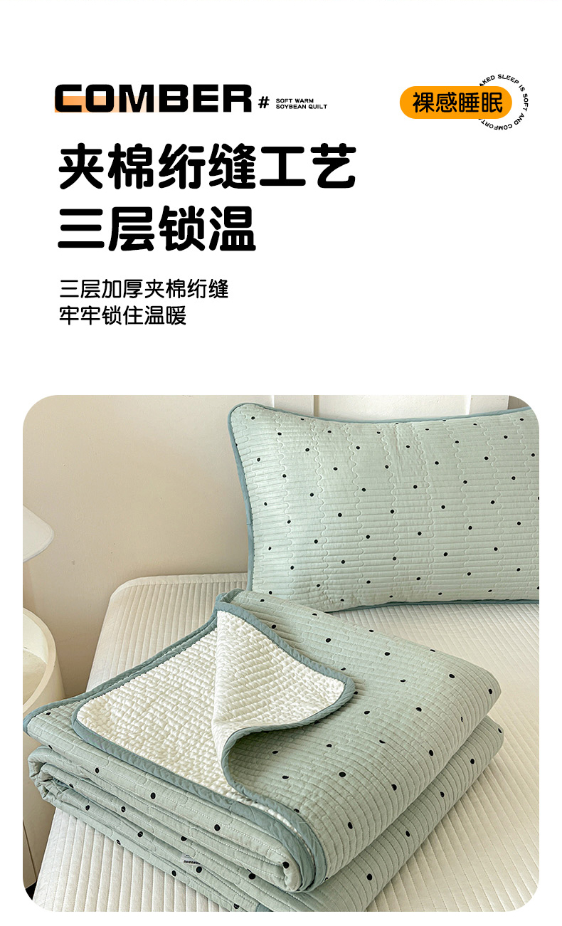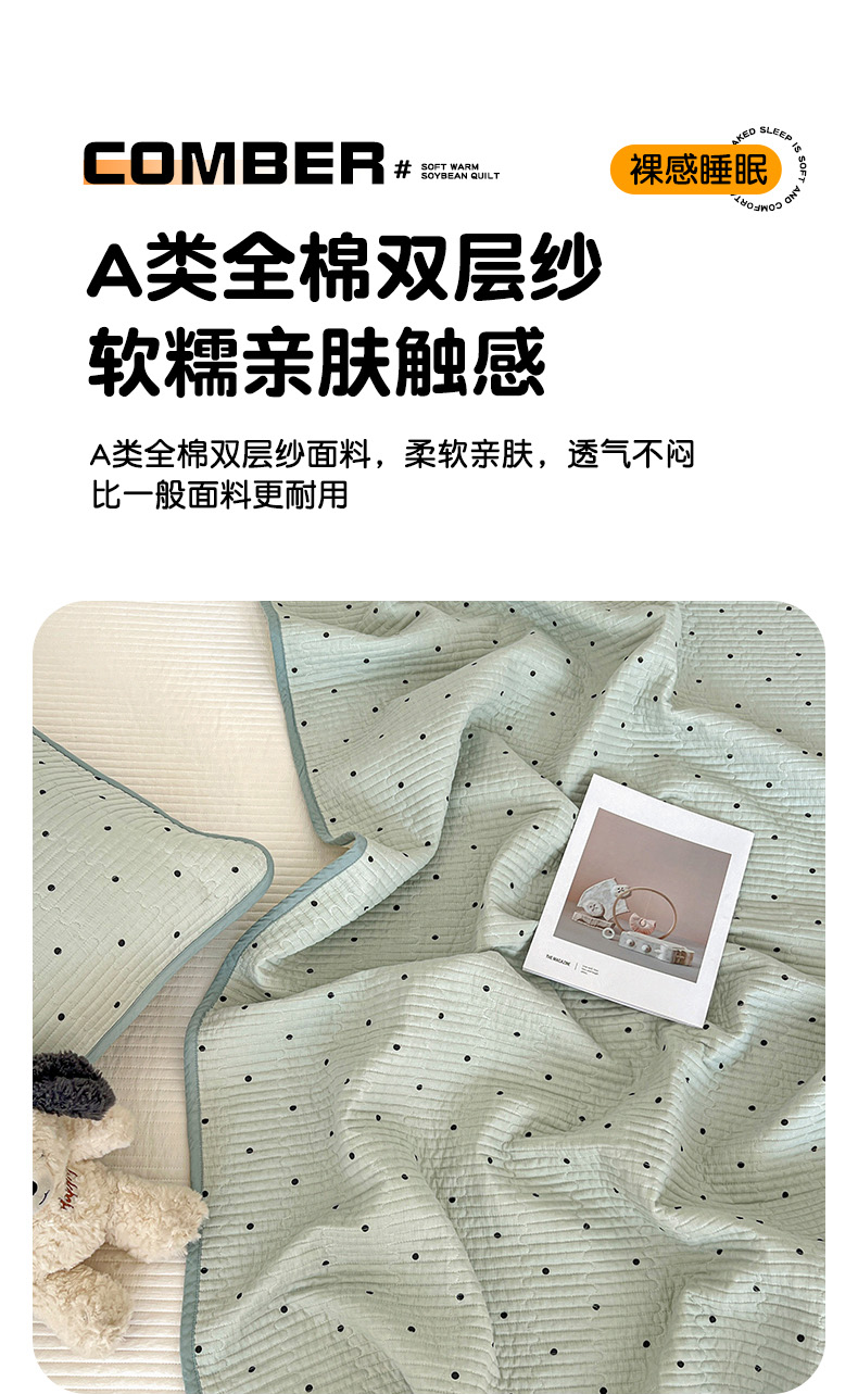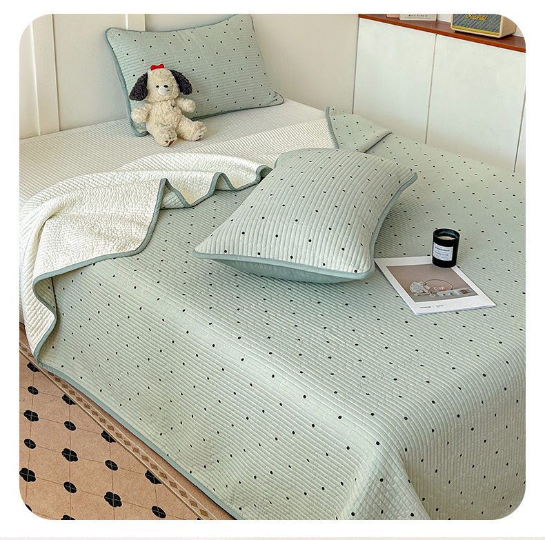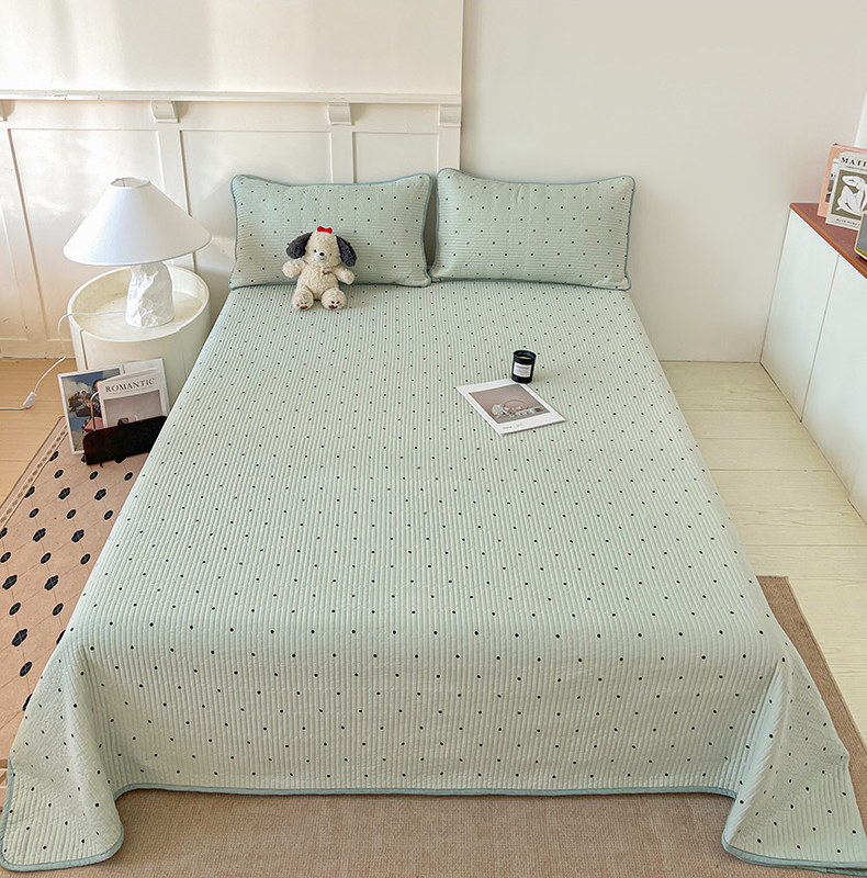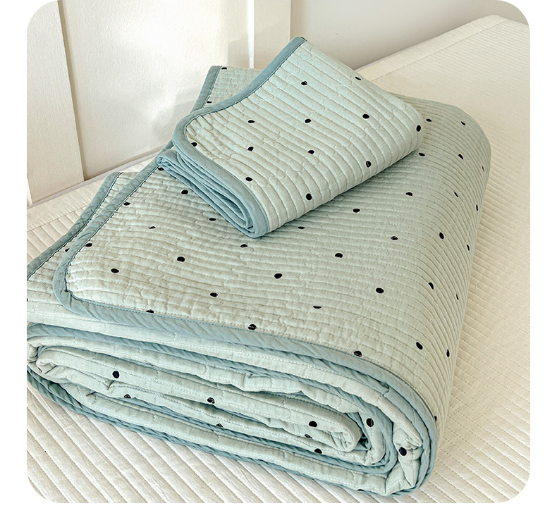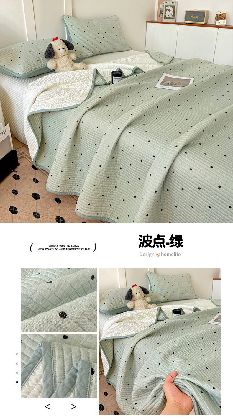 • 91家纺网 家纺一手货源 找家纺 2025新款A类纯棉双层纱床盖  波点-绿