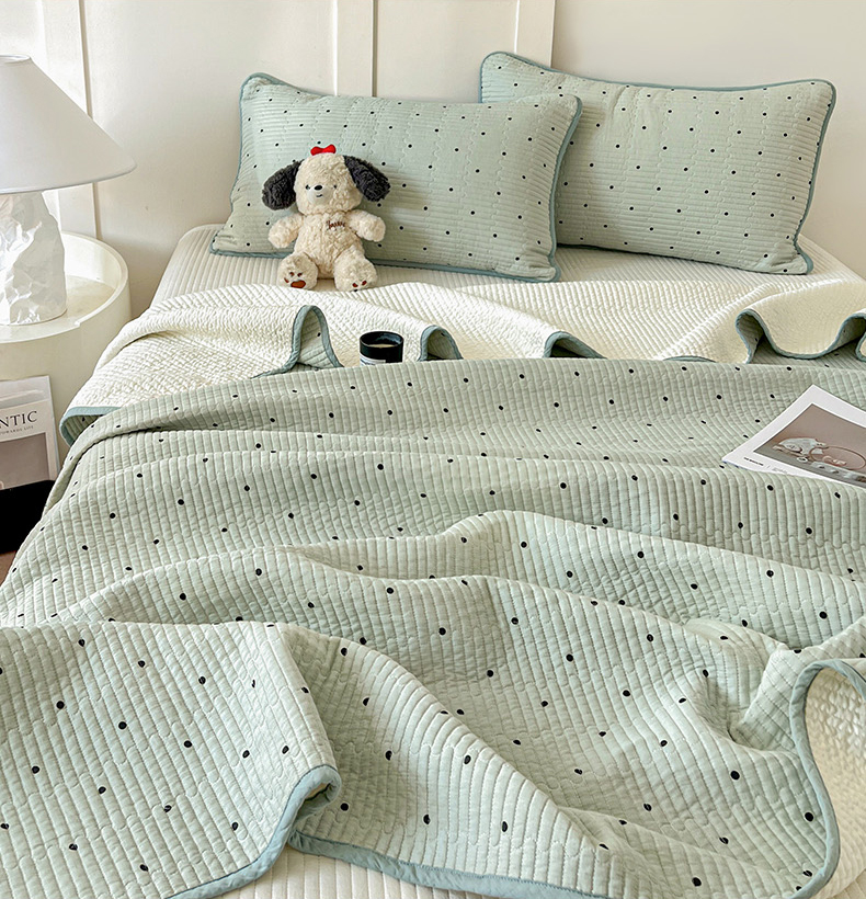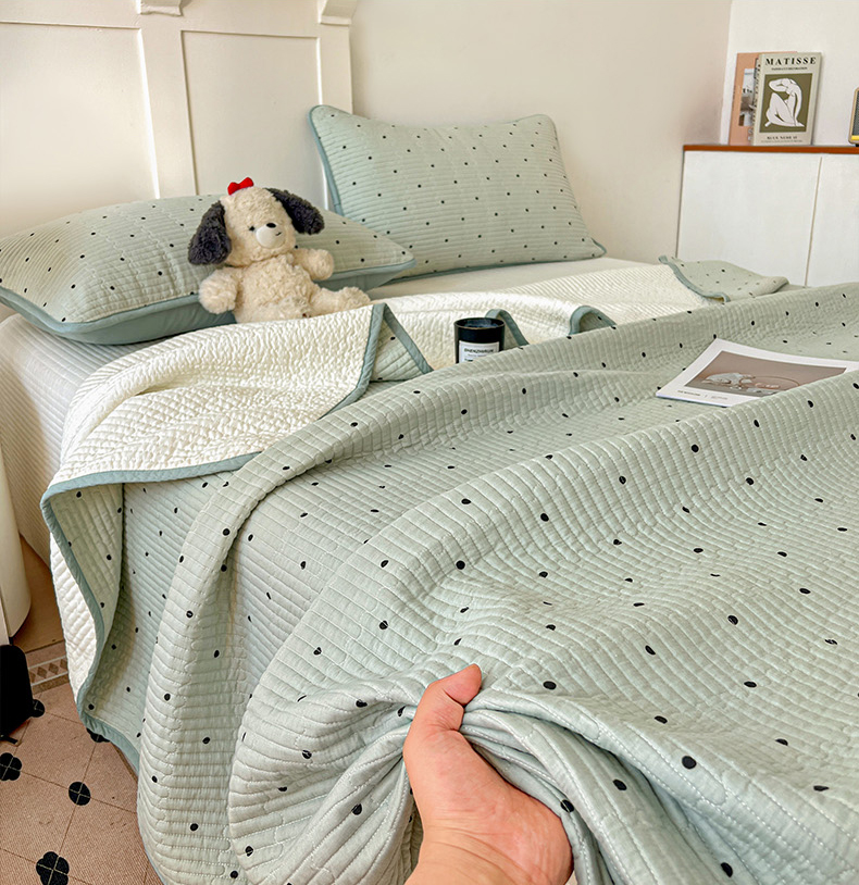• 91家纺网 家纺一手货源 找家纺 2025新款A类纯棉双层纱床盖  波点-绿 91家纺网 家纺一手货源 找家纺 2025新款A类纯棉双层纱床盖  波点-绿