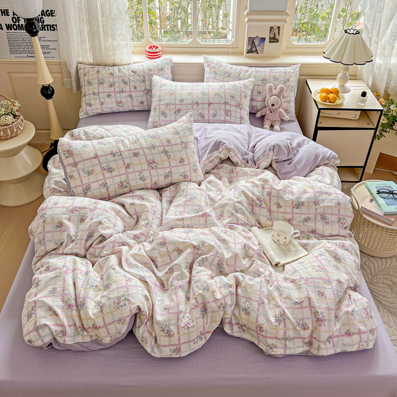 (总)一比一家纺 2026新款古法水洗仿棉云感纱A类四件套,知秋,白兰地,彩波波,草莓点点,格纹狗,嗨皮狗,赫莲娜,花千朵,花絮,酱果,蓝小格,莉莉安,梦幻灰,南瓜果果,葡萄,浅梦,森屿,疏影,甜心草莓,甜心喵,条纹狗,童趣,小黄花,小木马,小时光,小幸运,修修狗,薰衣草,灰樱桃,樱桃熊,鱼多多,组合图仅做展示不可下单