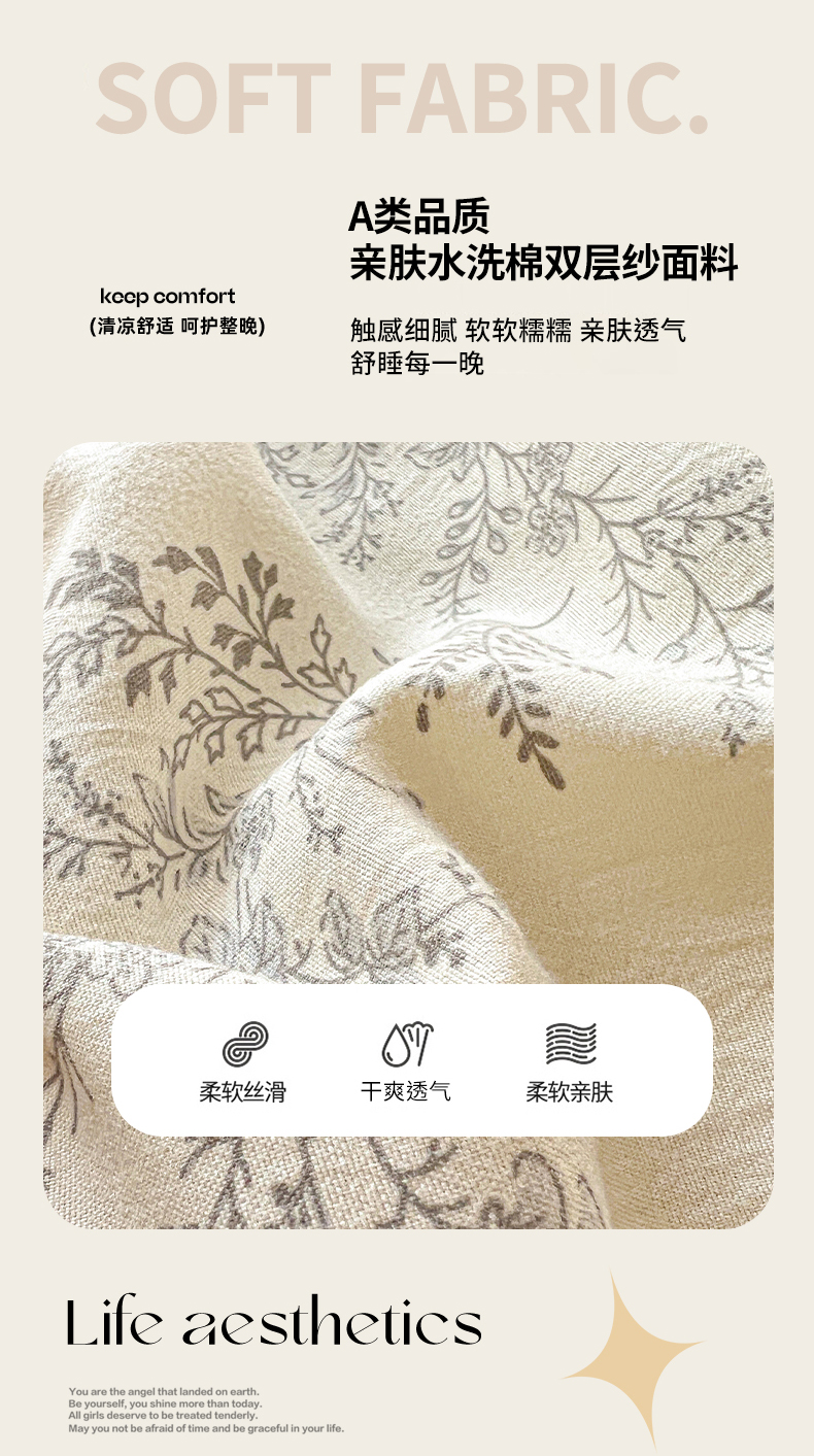 (总)妖妖家纺 2023新款超柔水洗双层纱三件套宿舍床,风铃花,后花园,花儿与兔,及风情,尽相思,静谧,可爱棕熊,兰花草,柿柿如意,涂鸦爱心,夏日樱桃,小熊花园,月季花香