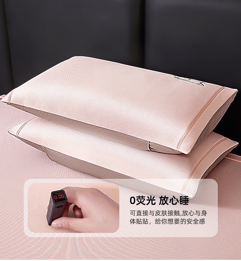 (总)全季家居 2023新款纯色凉感丝刺绣凉席,天蓝,灰色,粉色,绿色,草绿