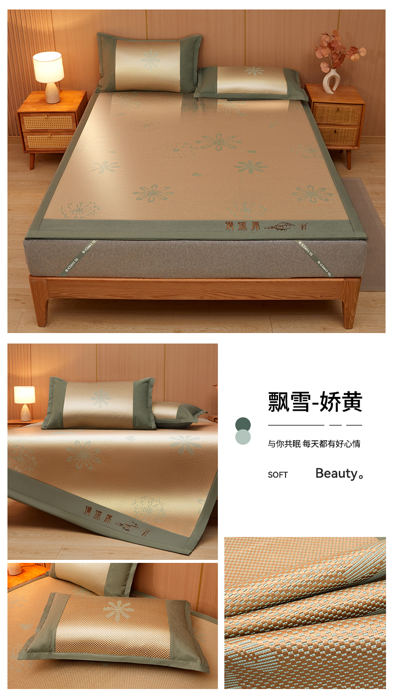 (总)全季家居 2025新款A类抗菌防螨幸运星系列冰藤席凉席席子,金咖 床席,水绿 床席,银灰 床席,金咖 床笠,水绿 床笠,银灰 床笠