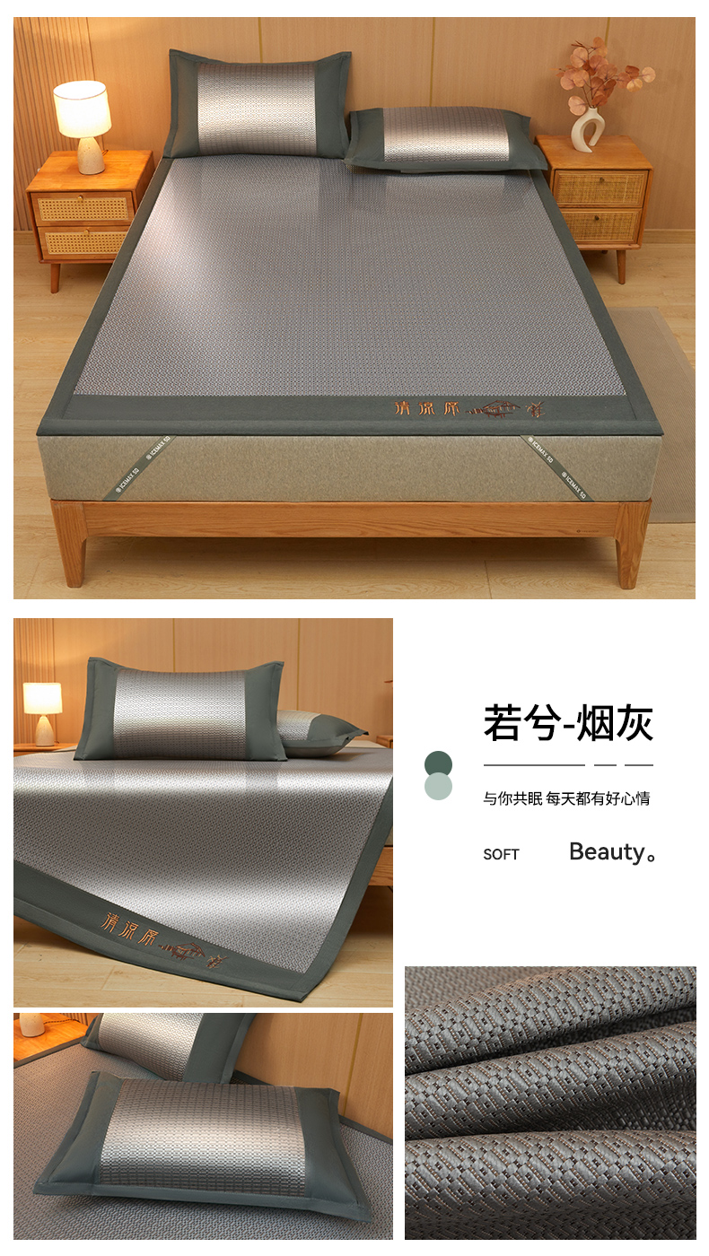 商品名称:全季家居 2025新款A类抗菌防螨清凉提花冰藤席凉席席子 若兮-烟灰 床笠