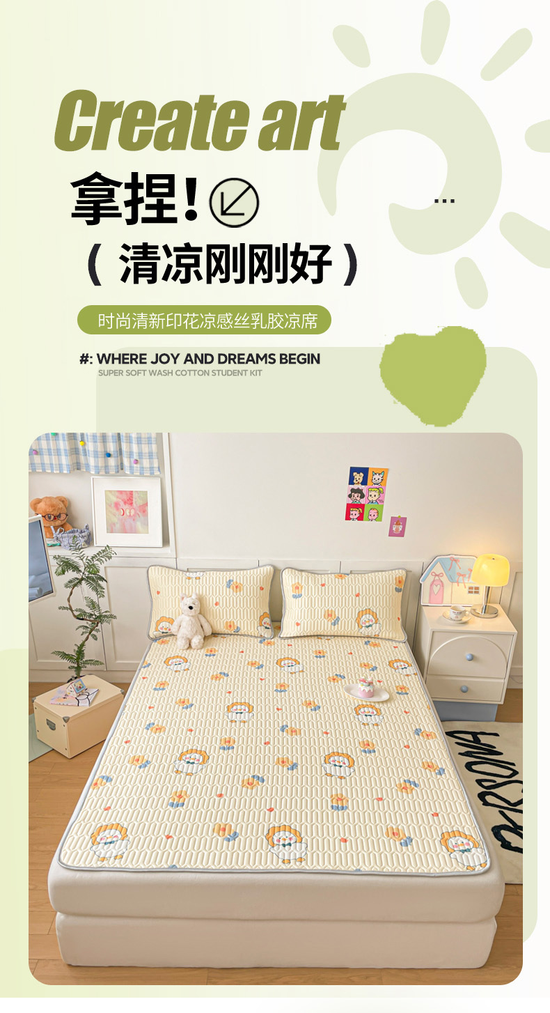 沐慕 2025新款高克重小清新乳胶凉席-风格一 萌萌鸭