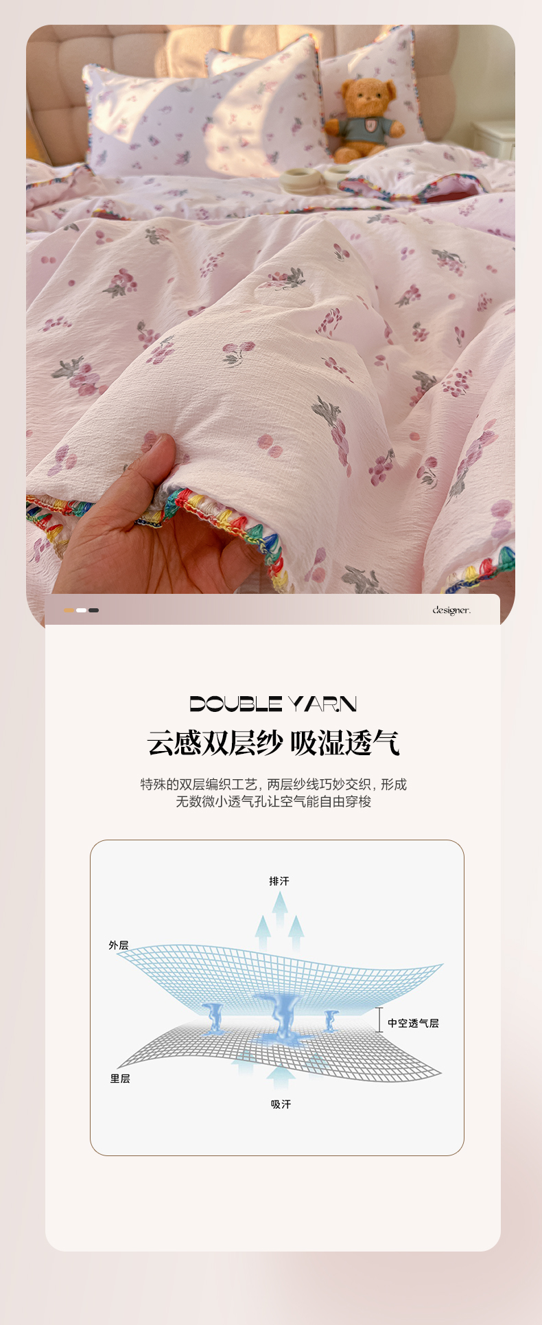 (总)韩巢家纺 2026新款花边款针织双层纱四件套,爱心,彩色蝴蝶结,春和豆沙,春和米,春意花开,叮当熊,花田薇,可爱多兰,可爱熊,敏敏灰,魔法森林,木昔,奶油波点米,奶油狗,巧克力,塞林娜绿,塞林娜米黄,问秋黄,问秋棕,熊先生,悠然紫,云山沐晚