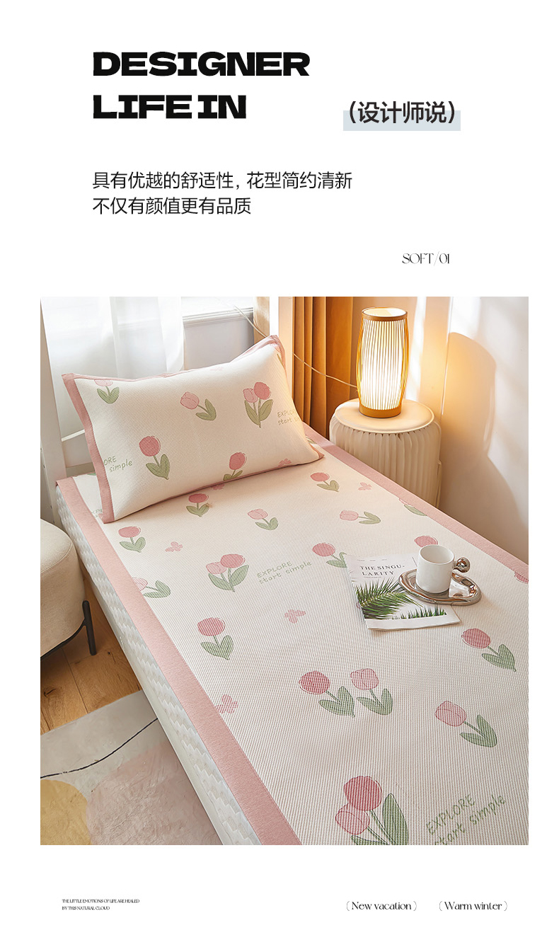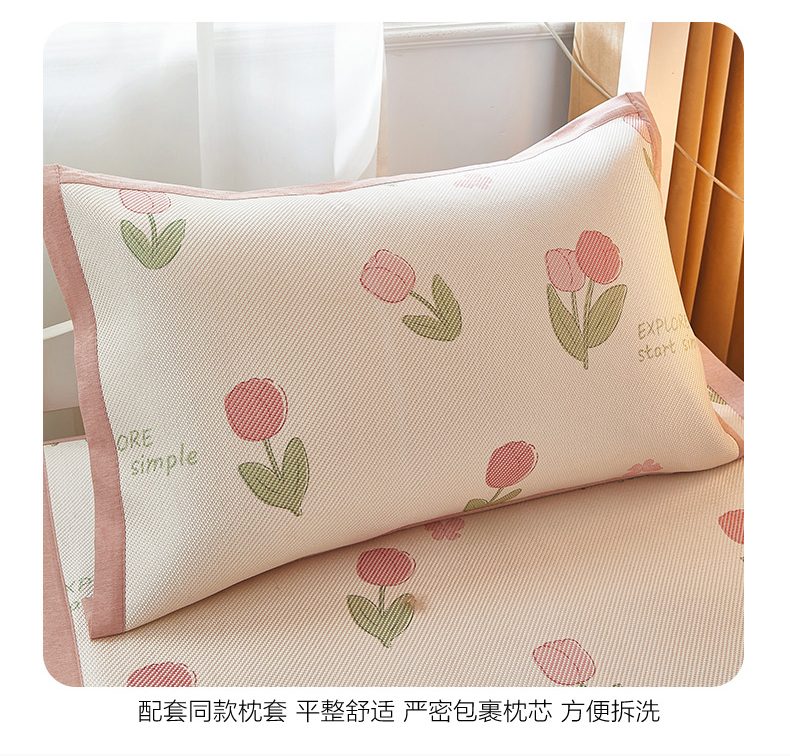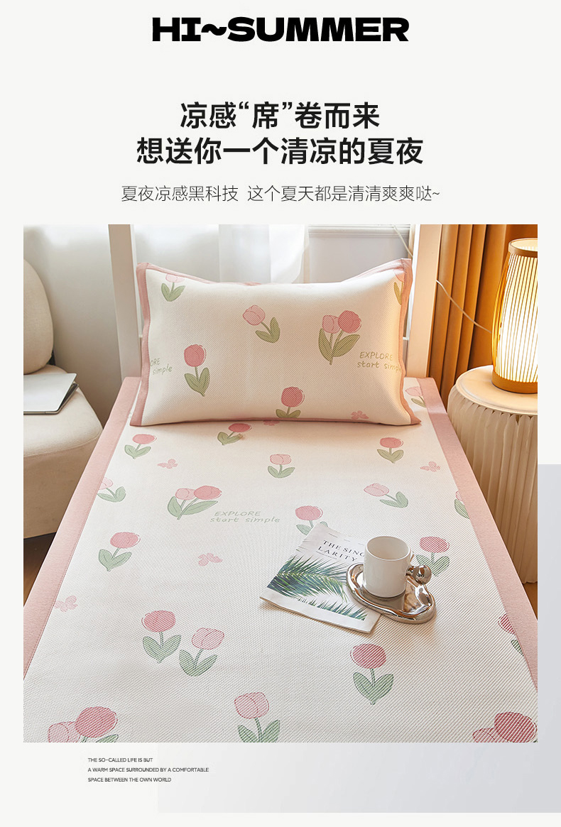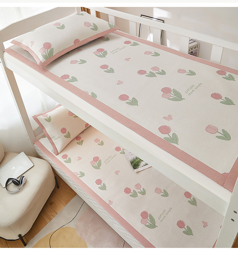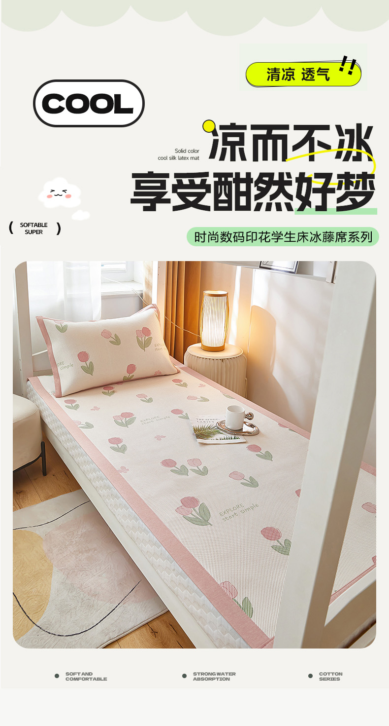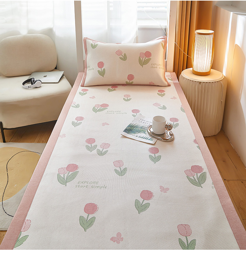 商品名称:沐慕 2025新款学生床小清新印花冰藤席 粉嫩郁金香