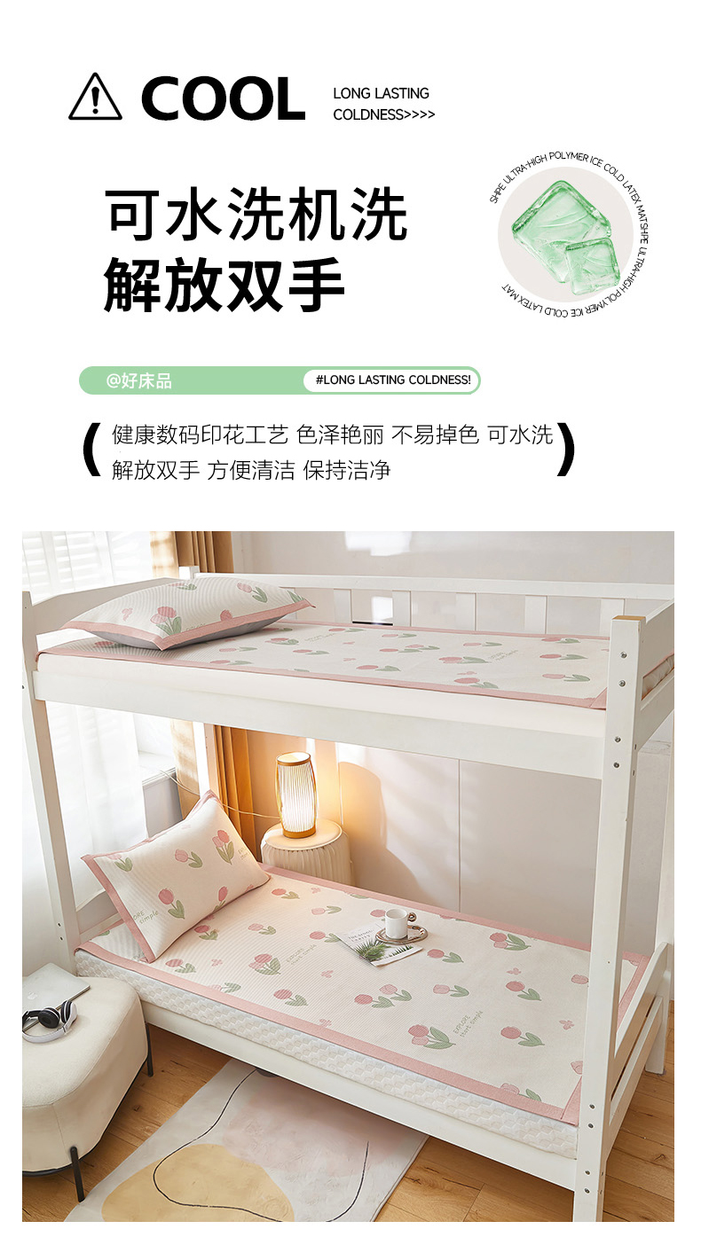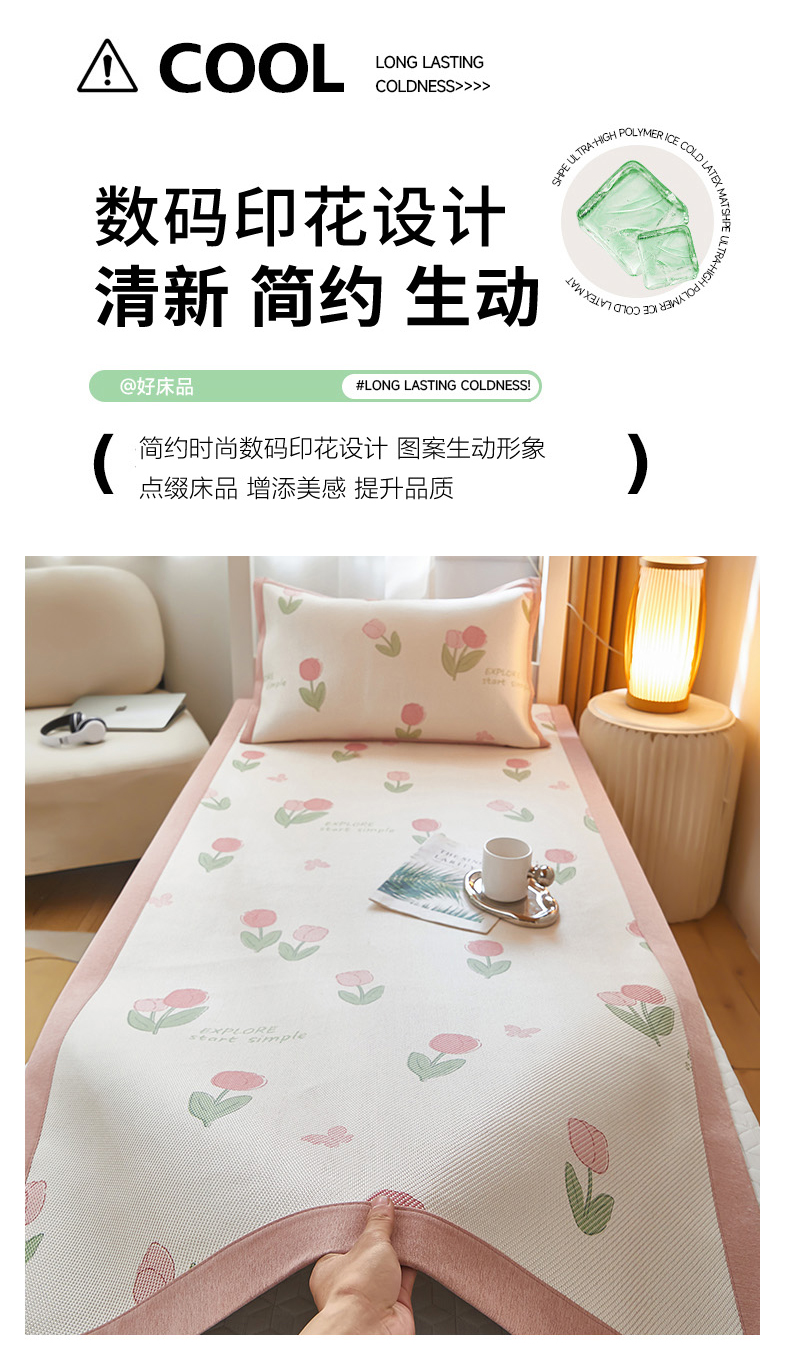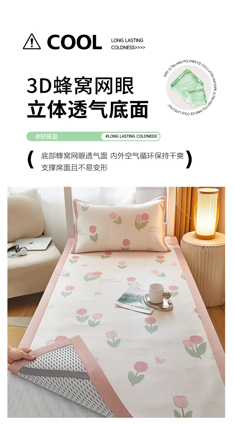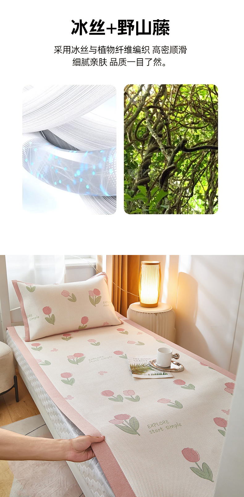 商品名称:沐慕 2025新款学生床小清新印花冰藤席 粉嫩郁金香