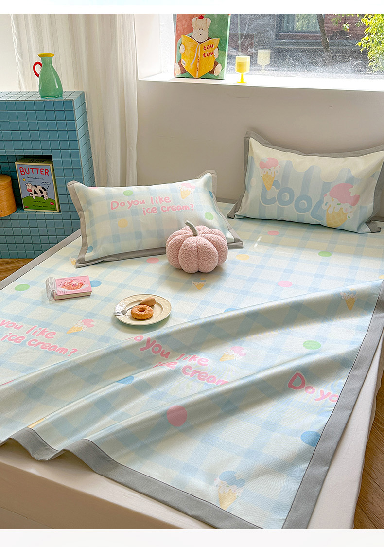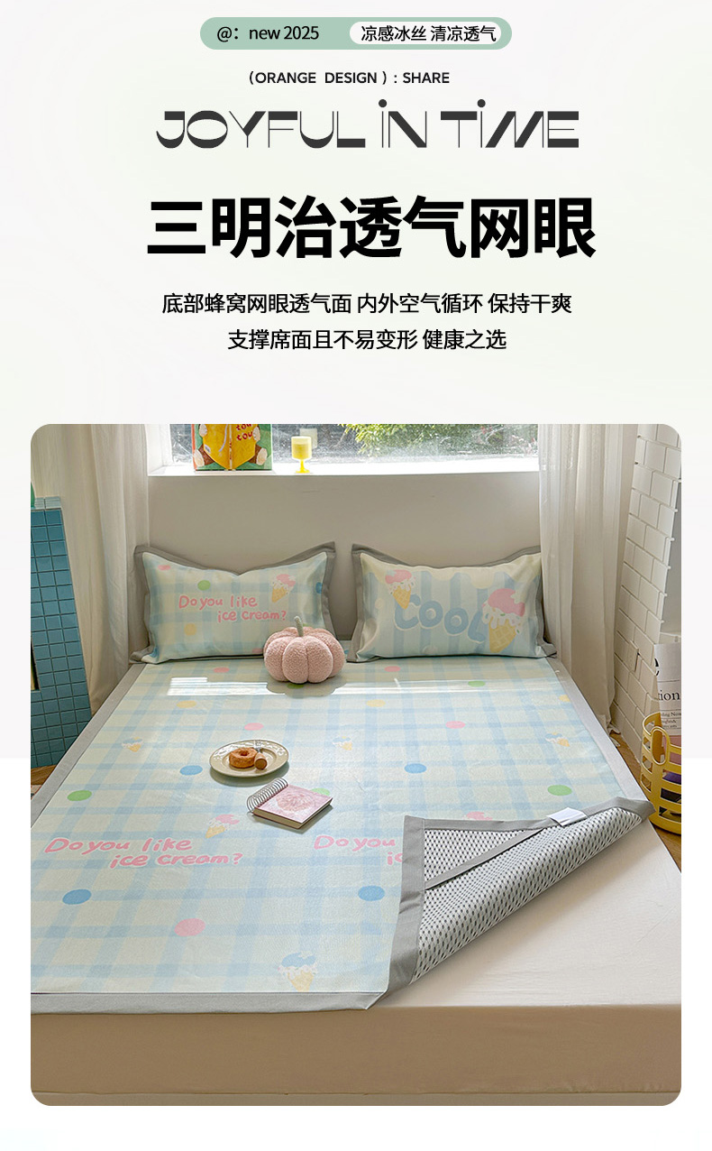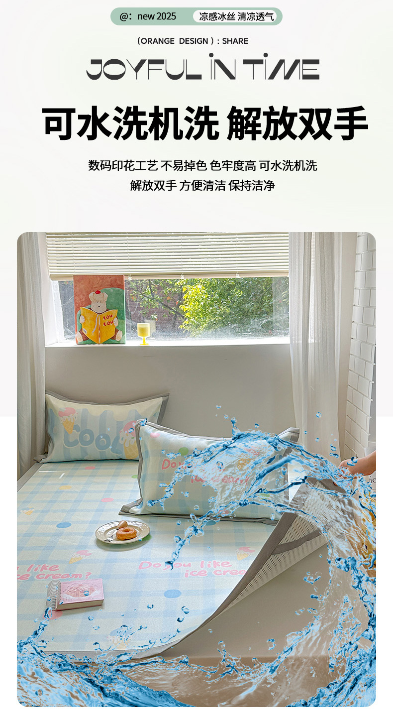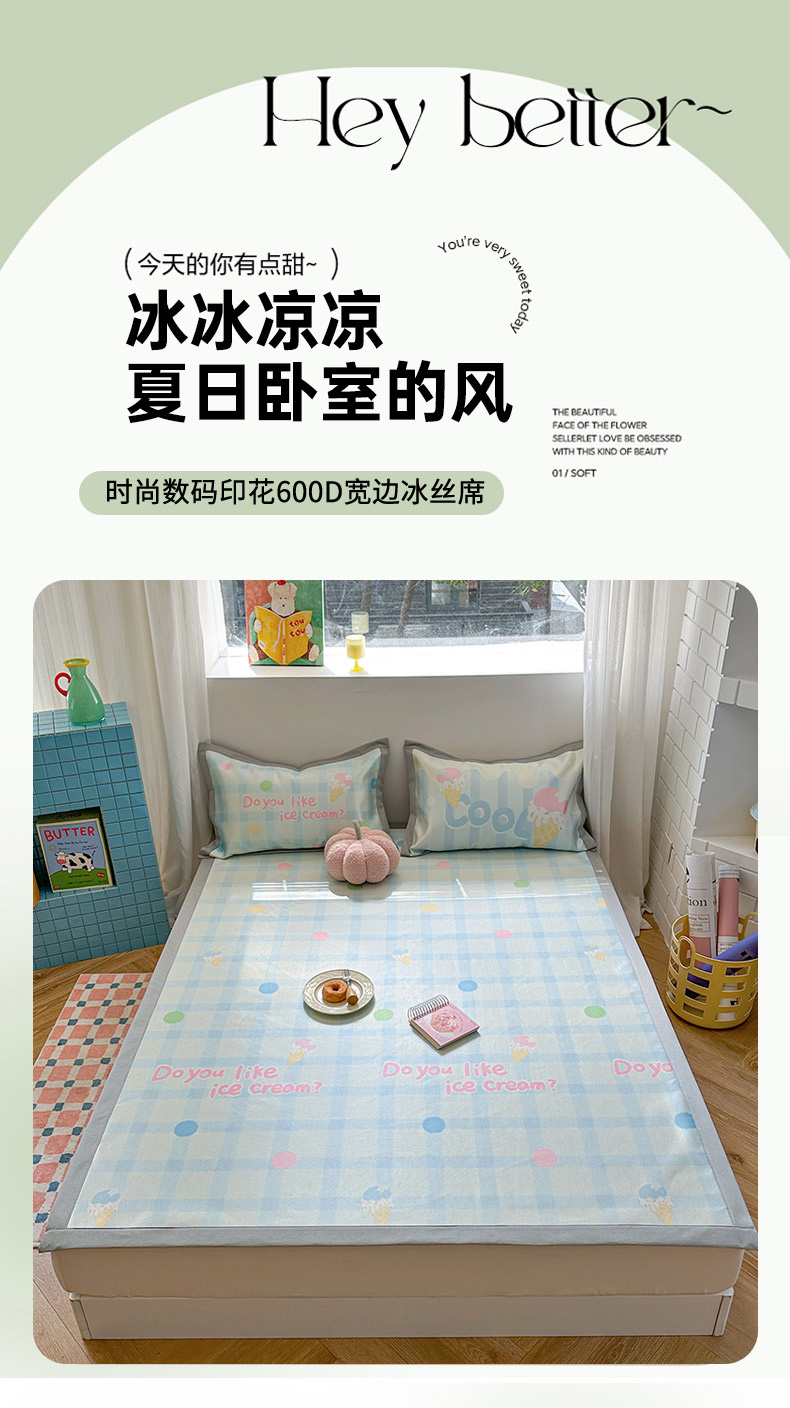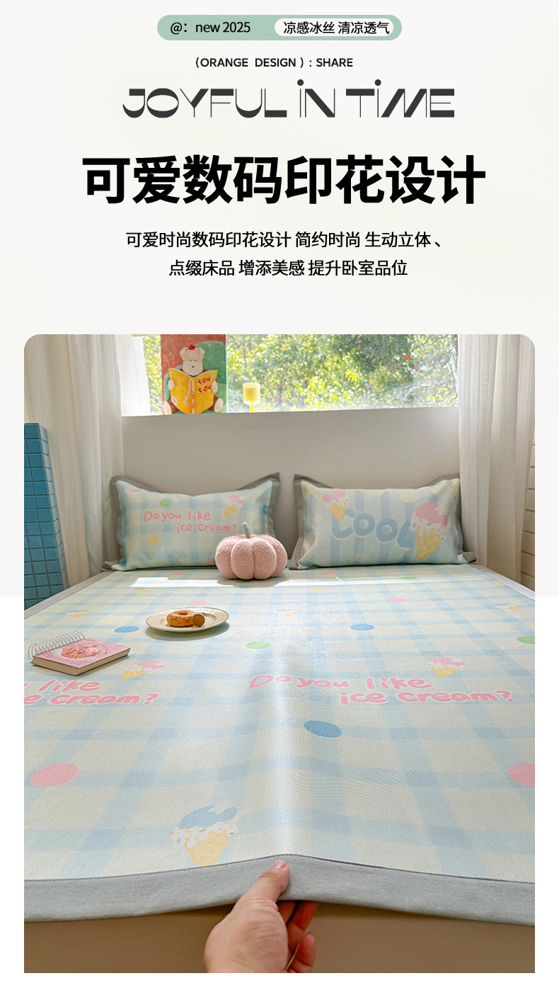 沐慕 2025新款时尚数码印花600D冰丝凉席系列 冰丝-多巴胺
