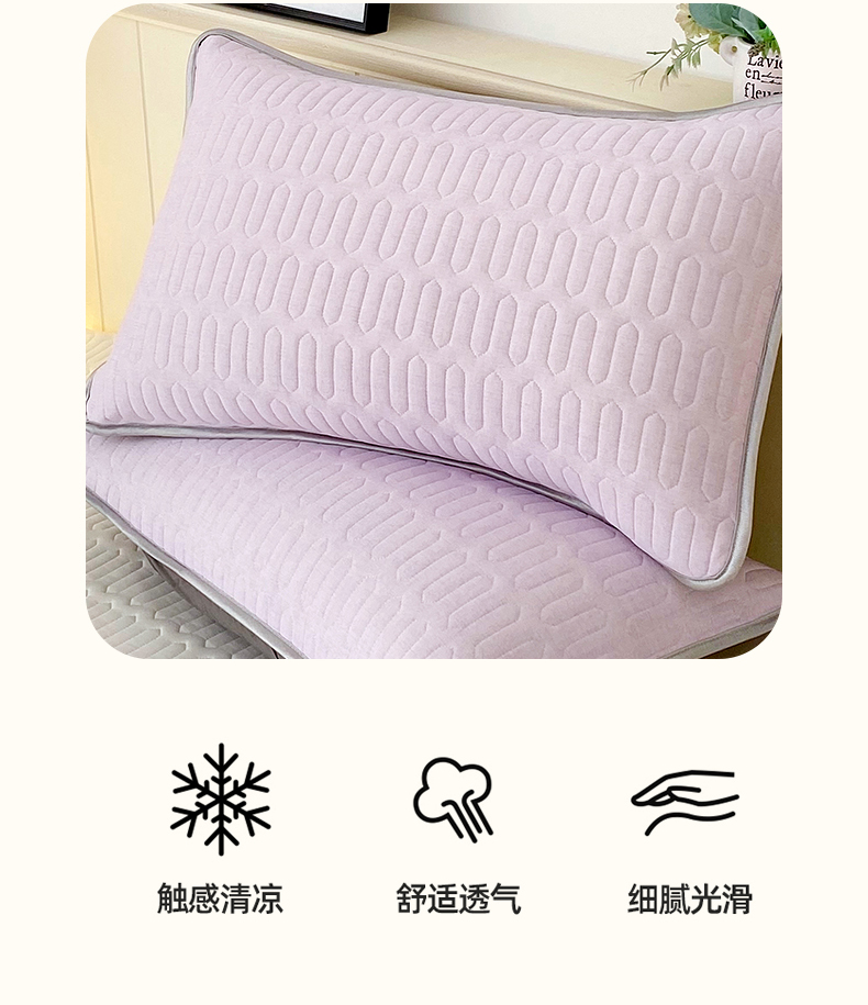 商品名称:芯宜佳 2025新款A类凉感丝乳胶单人枕套 肌理纹-紫